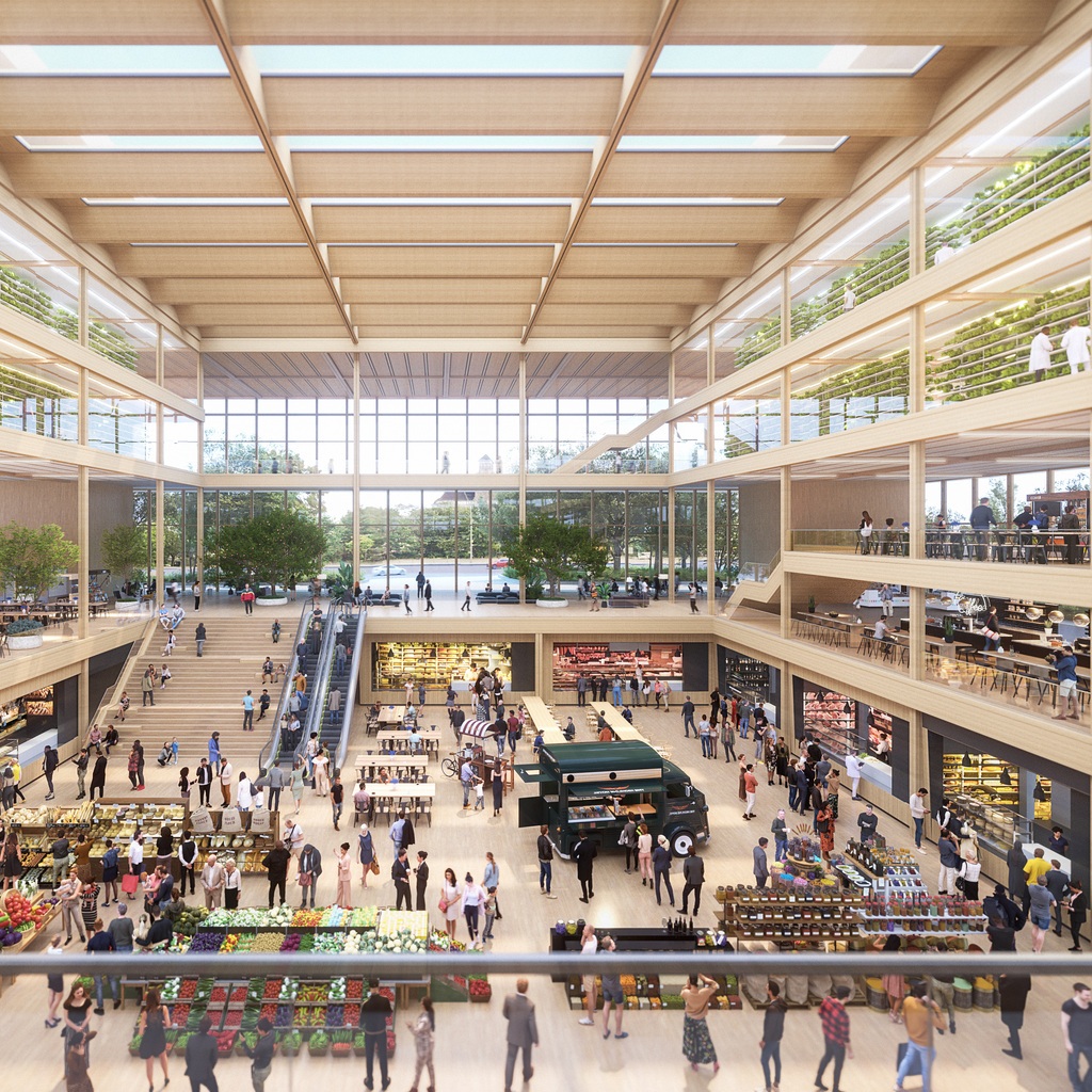 Wir haben in einer Machbarkeitsstudie einen Vorschlag für die Transformation und nachhaltige Weiterentwicklung des Areals gemacht. Er sieht drei Zonen vor: den Kernmarkt im Zentrum für die Händler*innen, eine neue öffentliche Markthalle für die Stadtgesellschaft im Osten und eine Erweiterungsfläche im Westen. Eine zentrale Achse für den Einkauf zu Fuß verbindet alle Verkaufshallen, während im Freien ein durchgängiger Erschließungsring den Lieferverkehr steuert. Die Bestandsgebäude können dabei erhalten, saniert und in ein flexibel anpassbares modulares System integriert werden. Damit bildet der Entwurf die Grundlage für eine Jahrzehnte vorausschauende Planung, die den Berliner Großmarkt in die Stadtgesellschaft integriert und ihn zu einem lebendigen, zukunftsfähigen Treffpunkt transformiert.
