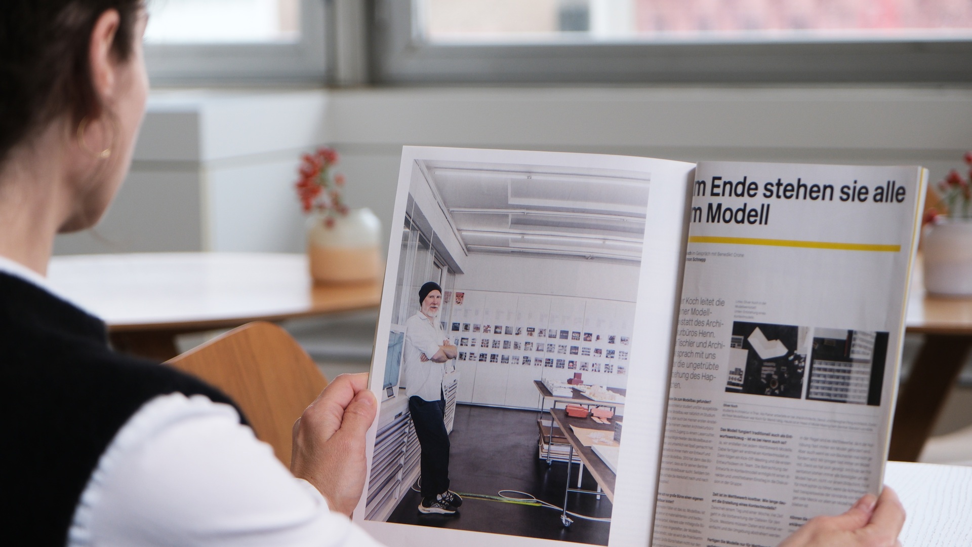 Unser Leiter der Berliner Modellwerkstatt Oliver Koch sprach darüber mit Benedikt Crone vom Magazin Bauwelt. Er sagt: "Ein Modell hat im Gegensatz zu virtuellen Darstellungen seine eigene Wahrhaftigkeit: Es ist für eine Momentaufnahme erstellt – und einfach da."