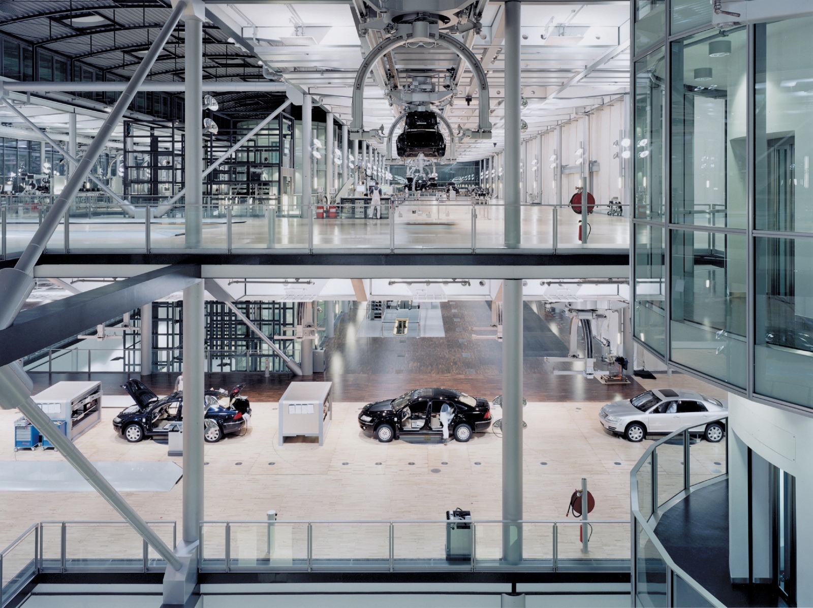 Unlike traditional factories, the Transparent Factory was designed as a place of encounter and dialogue to make the experience of automotive production tangible to the outside—to actual and potential customers as well as passers-by. When it opened in 2001, it brought industry back into the city, making manufacturing visible and interactive.