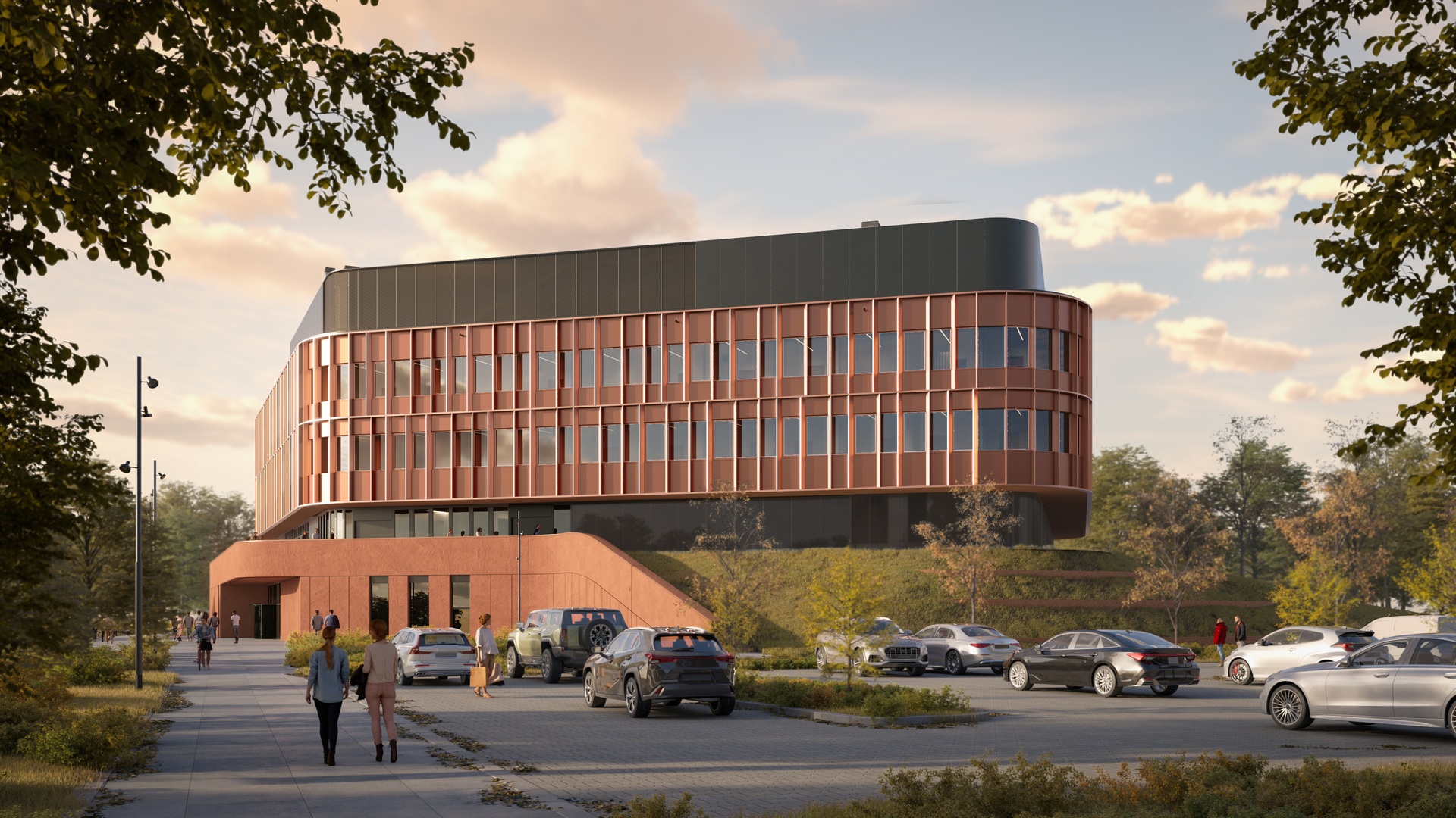 Die Forschung mit Laserstrahlen und hochpräzisen technischen Geräten erfordert eine robuste und sichere Umgebung. Neben dem Einsatz solider Materialien macht der Entwurf zu diesem Zweck die Topographie des Grundstücks dienstbar: Die Labore sind hauptsächlich im Erdgeschoss untergebracht, welches zum größten Teil ins Erdreich eines neu geschaffenen Hügels integriert und so natürlich geschützt ist.