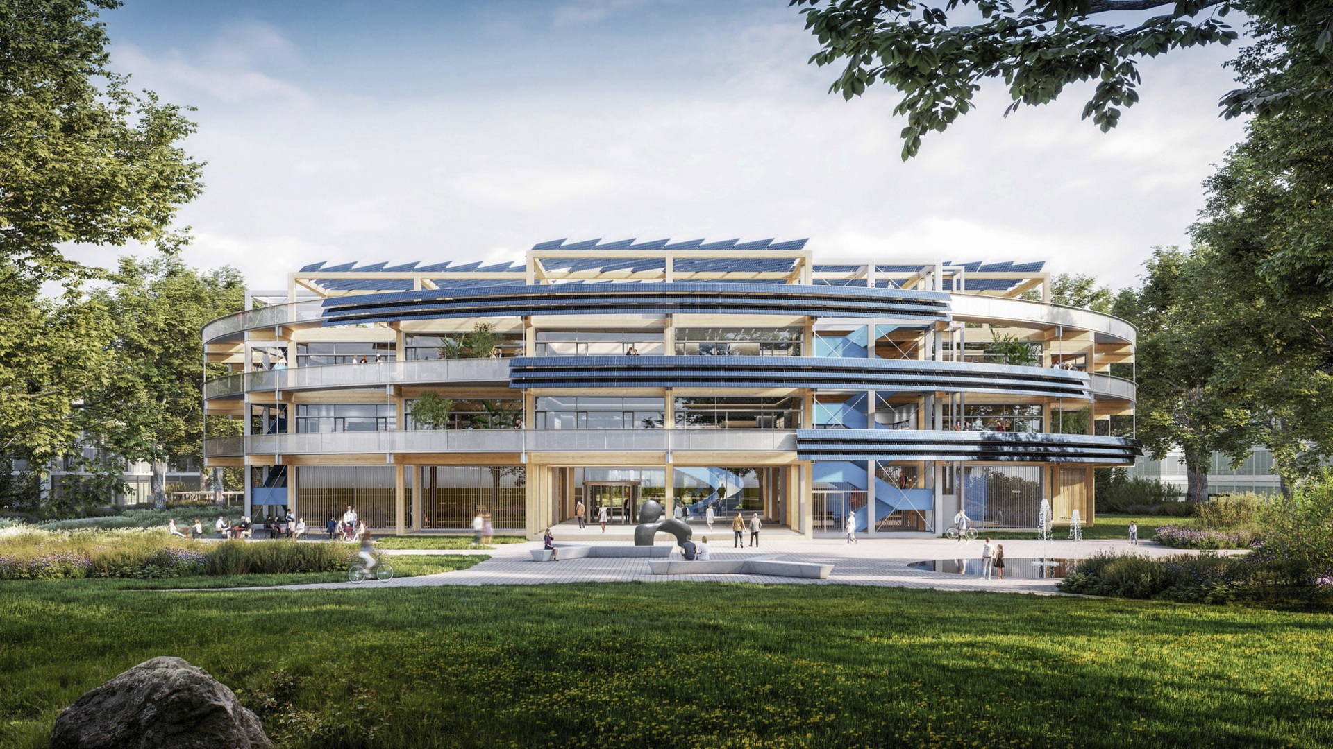 Der Brainergy Hub zelebrierte am 28. November seinen Spatenstich in Jülich. Im Herzen eines neuen Innovationsparks für Unternehmen und Startups, die sich nachhaltiger und erneuerbarer Energien, der Bioökonomie und Digitalisierung widmen, verkörpert der markante Rundbau den Wandel zu einer grünen Zukunft. Der modulare Bau in Holz-Beton-Hybridbauweise fördert mit flexiblen Strukturen den interdisziplinären Austausch und damit das Potenzial für Innovation. Die Fertigstellung ist für 2027 geplant.