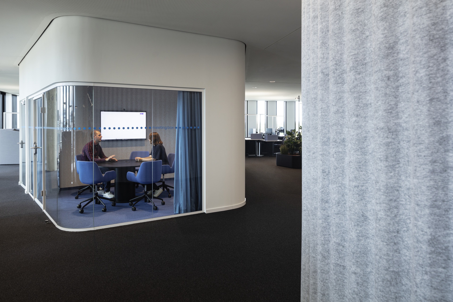In den Gebäuden kommen Materialien zur Anwendung, die Covestro herstellt, beispielsweise Polycarbonat-Platten für Fassaden und Oberflächen in den Interieurs.