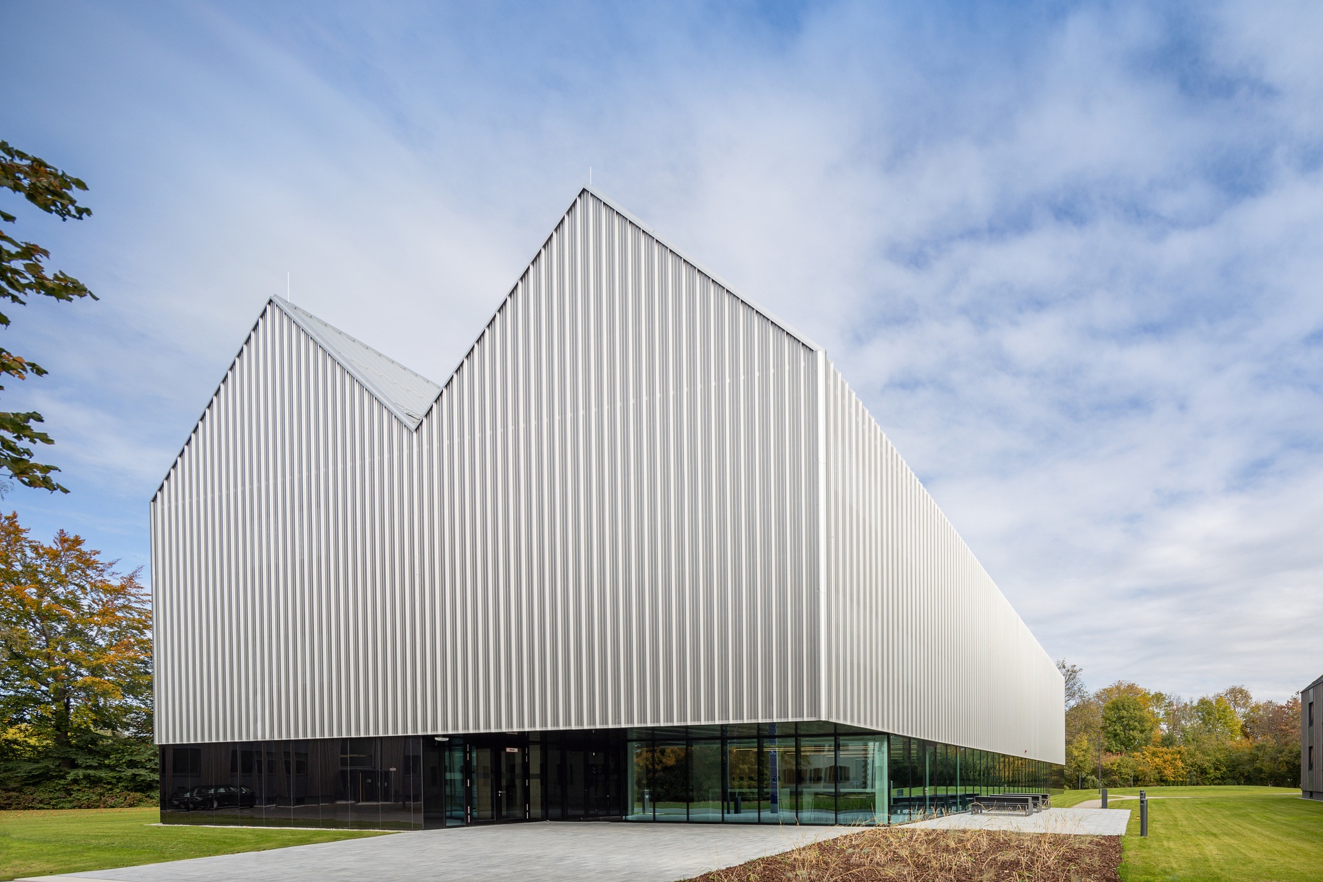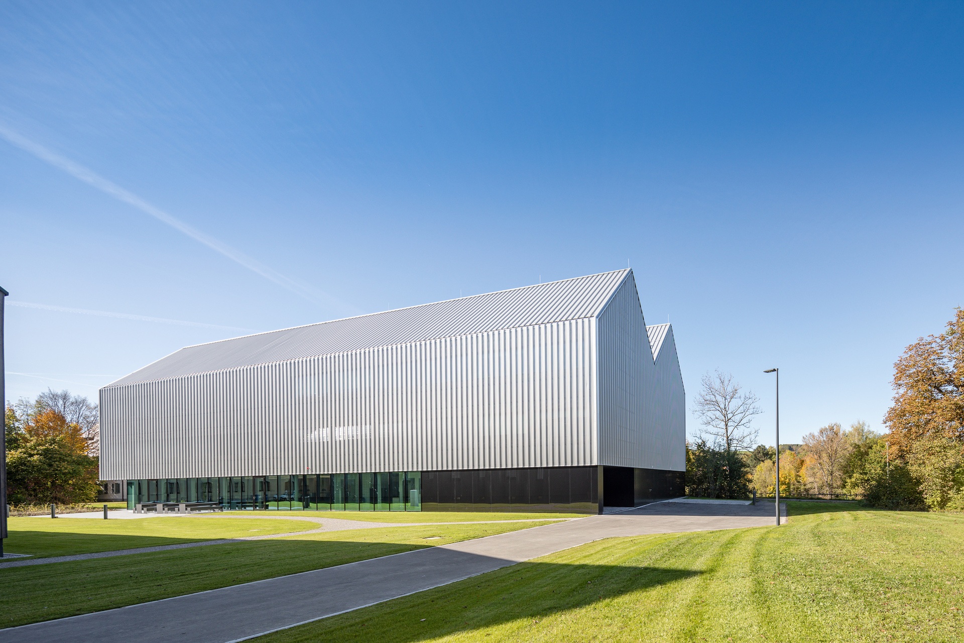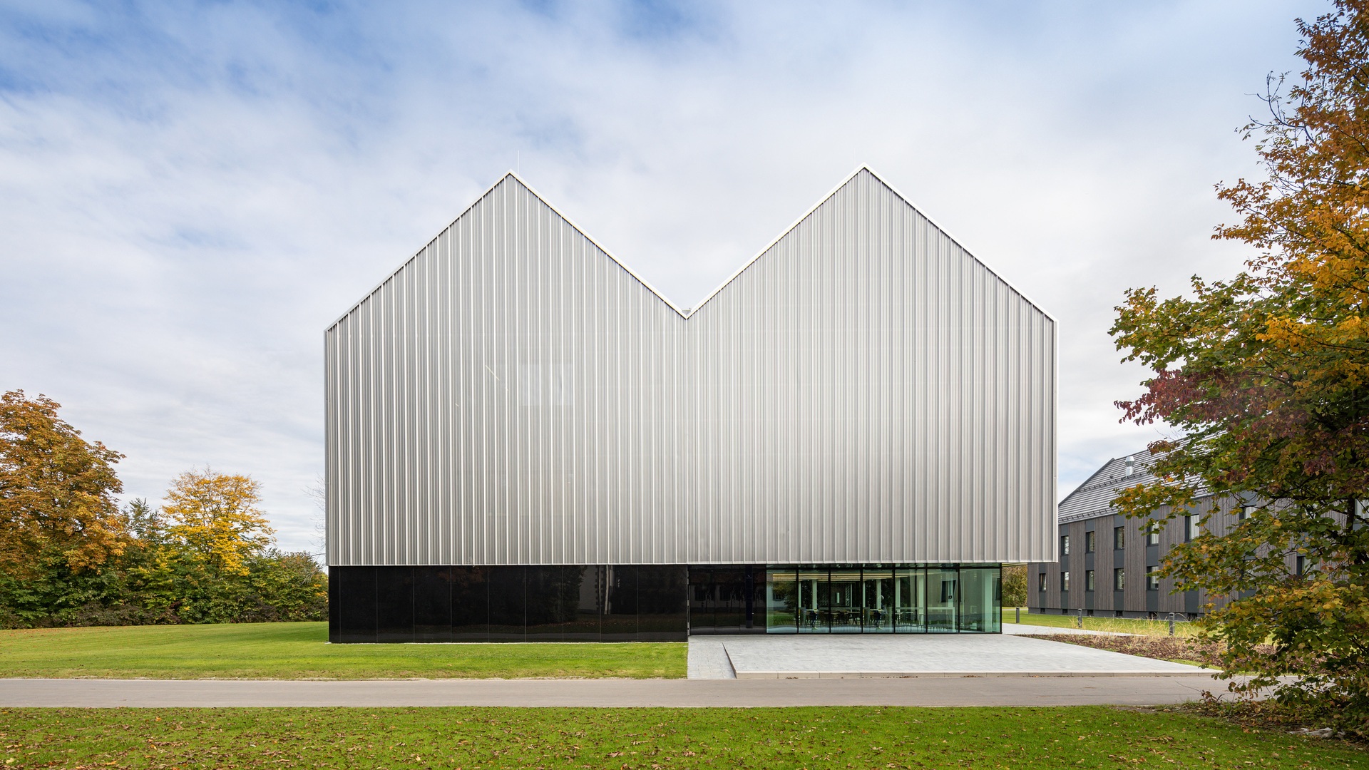 Geprägt ist der Baukörper der Akademie durch seine beiden Satteldächer, welche ihre Form aus der Dachneigung der umgebenden Bebauung beziehen.