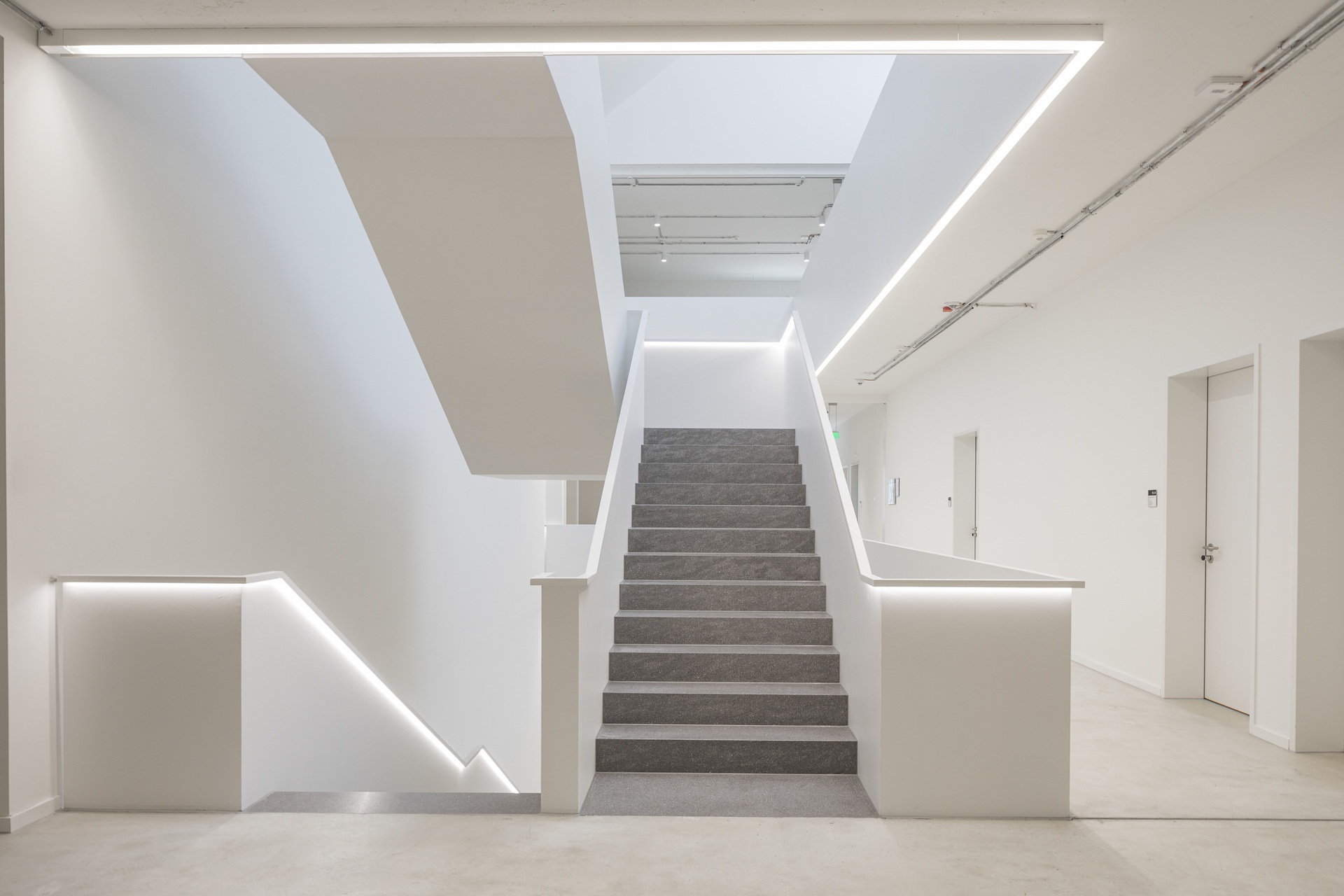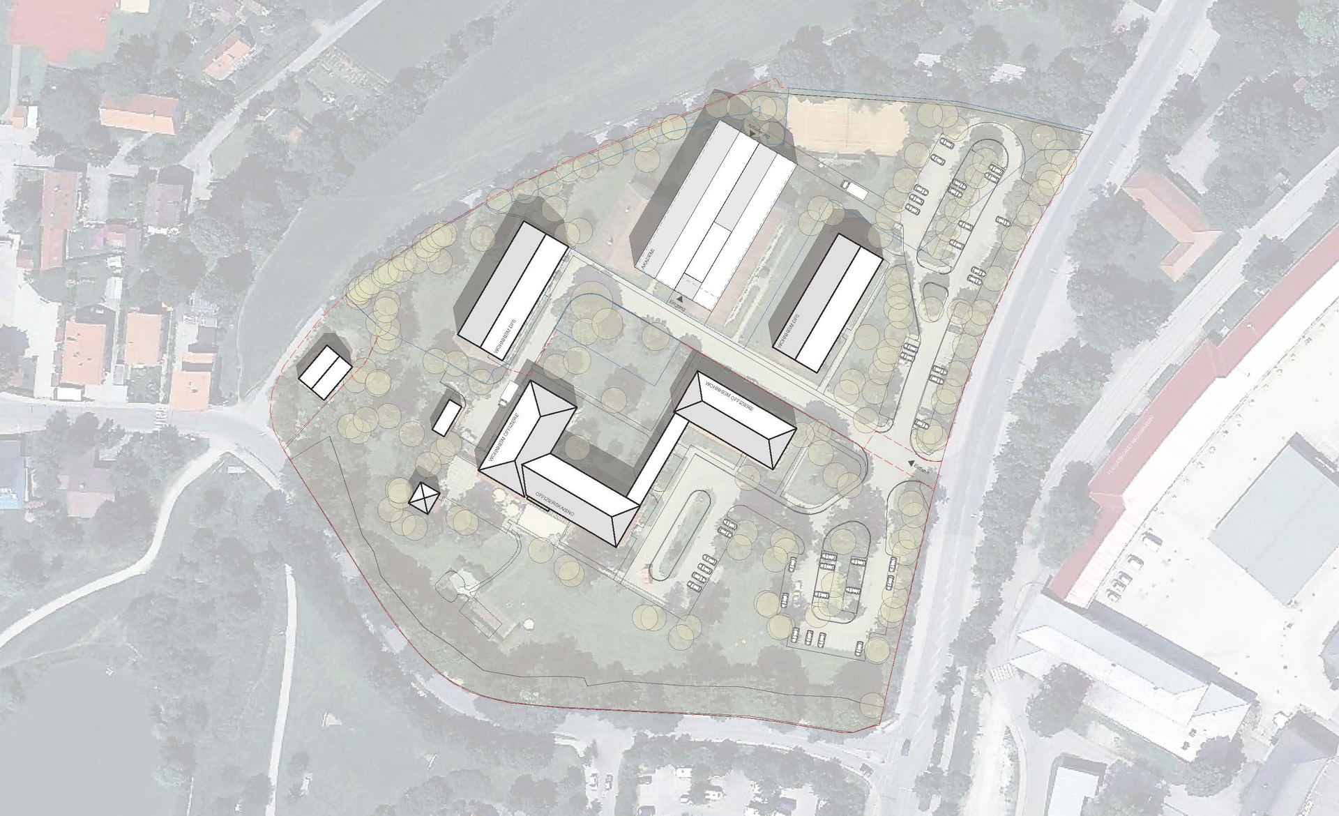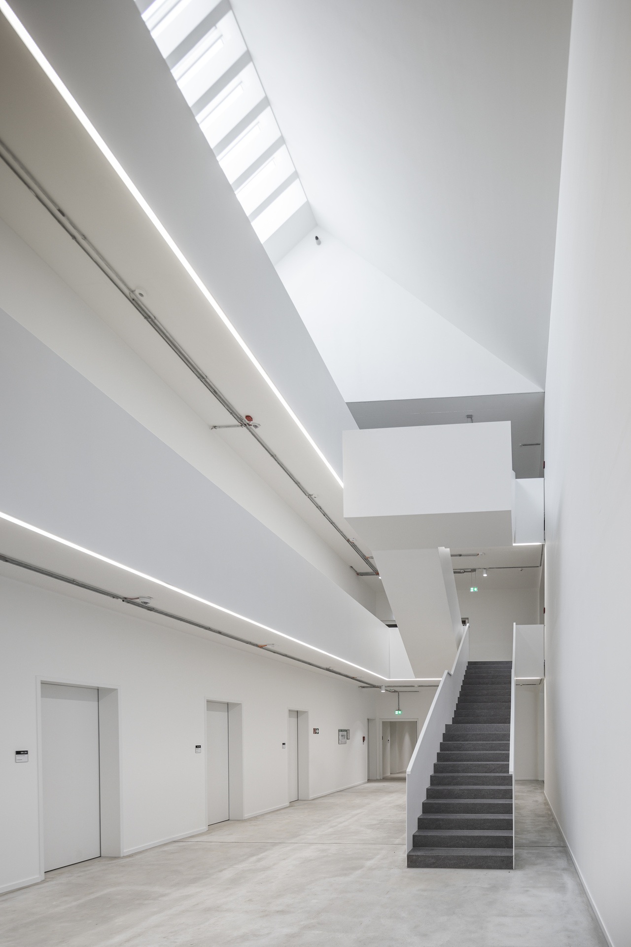 Geprägt ist der Baukörper der Akademie durch seine beiden Satteldächer, welche ihre Form aus der Dachneigung der umgebenden Bebauung beziehen.