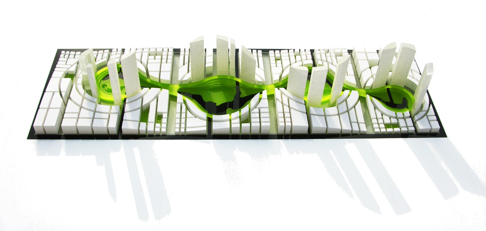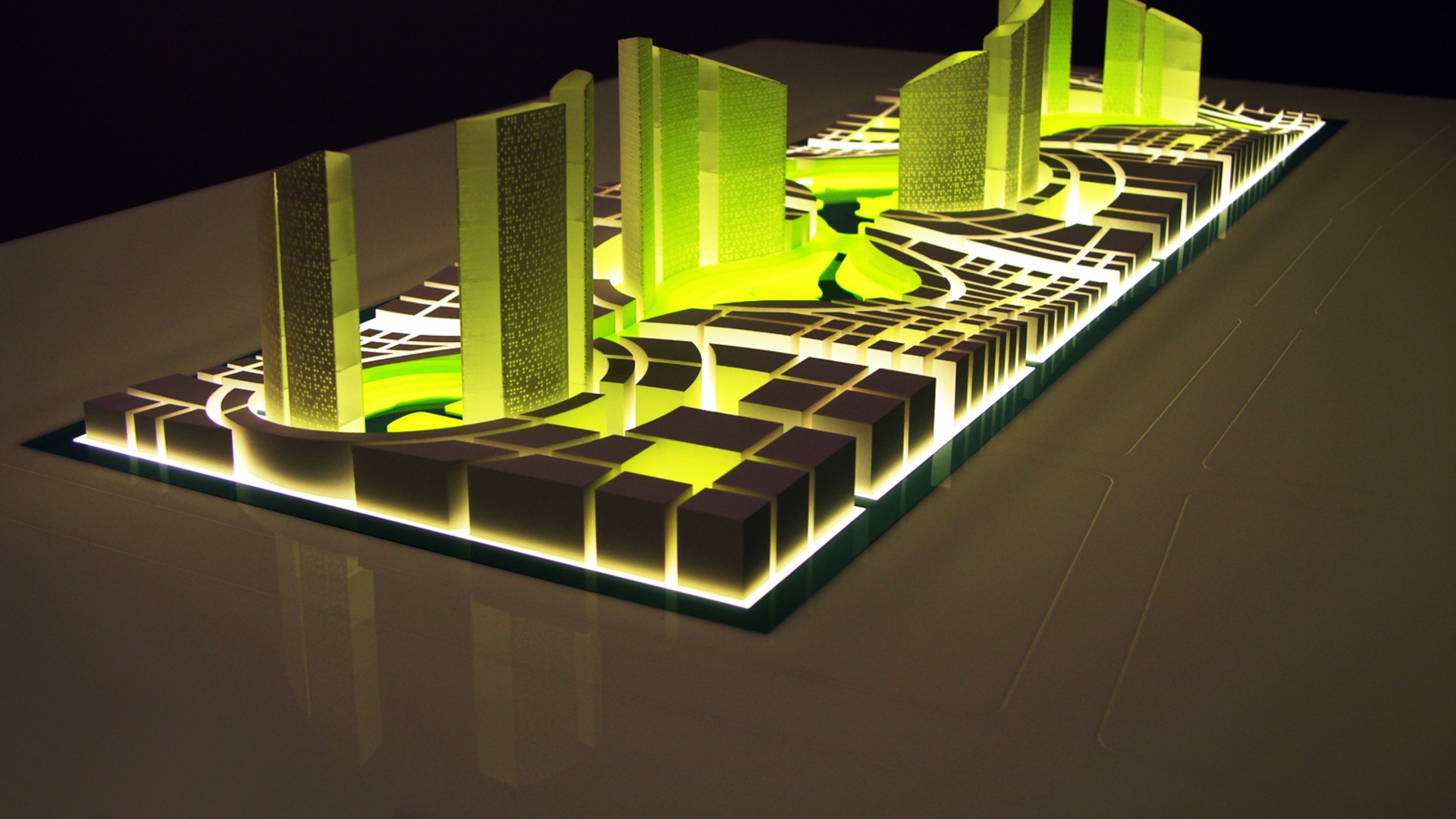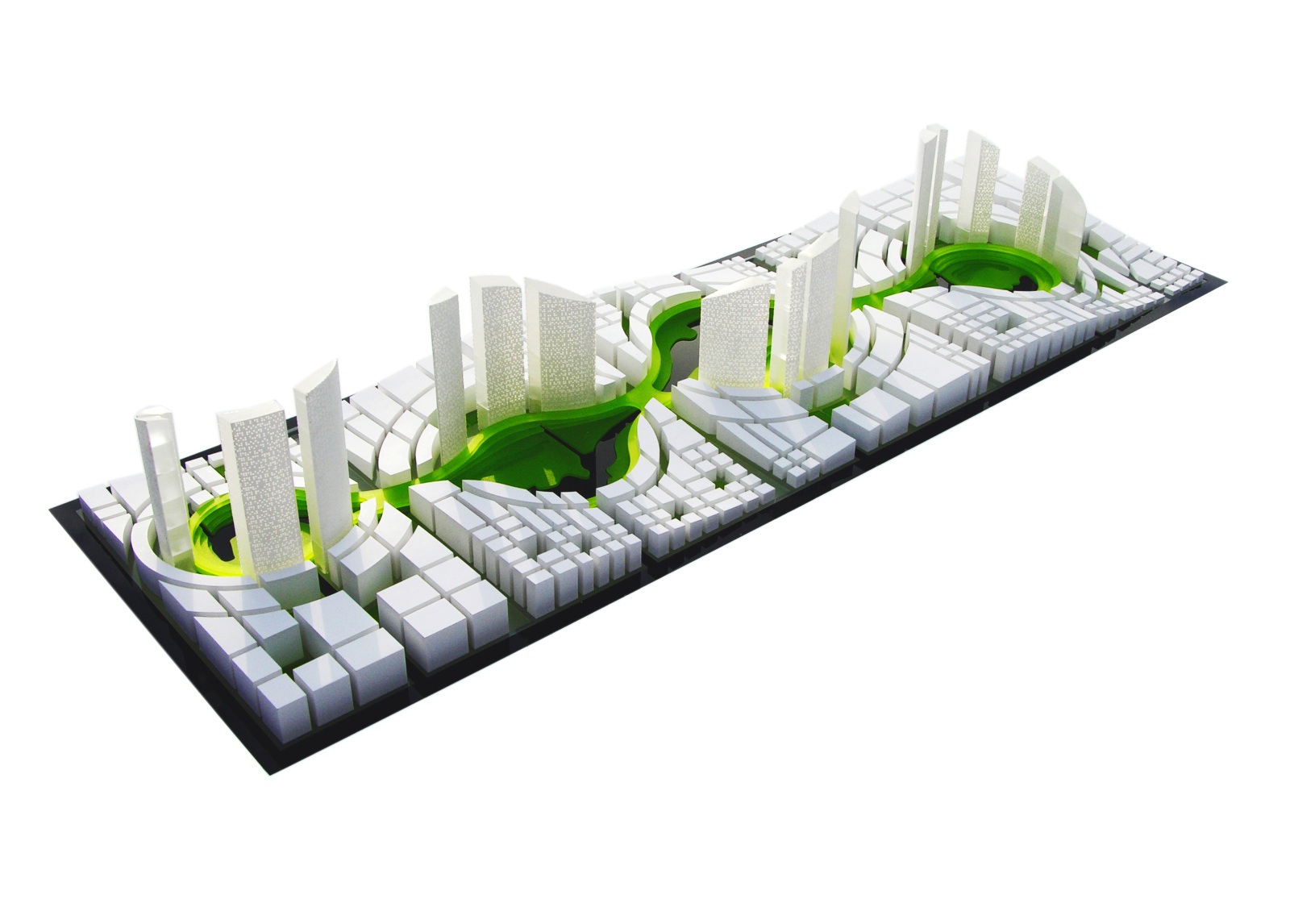 Die Masterplanstudie „Ecopolis“ gilt einem einzelnen Segment des Areals und entwirft das Konzept eines autofreien Quartiers. Von weitem erkennbare Hochhäuser schaffen eine ikonische Eingangssituation. Zu beiden Seiten des Boulevards, der das gesamte Stadtgebiet durchquert, befinden sich öffentlich genutzte Räume, die über ein innenliegendes Wegesystem vernetzt sind.
