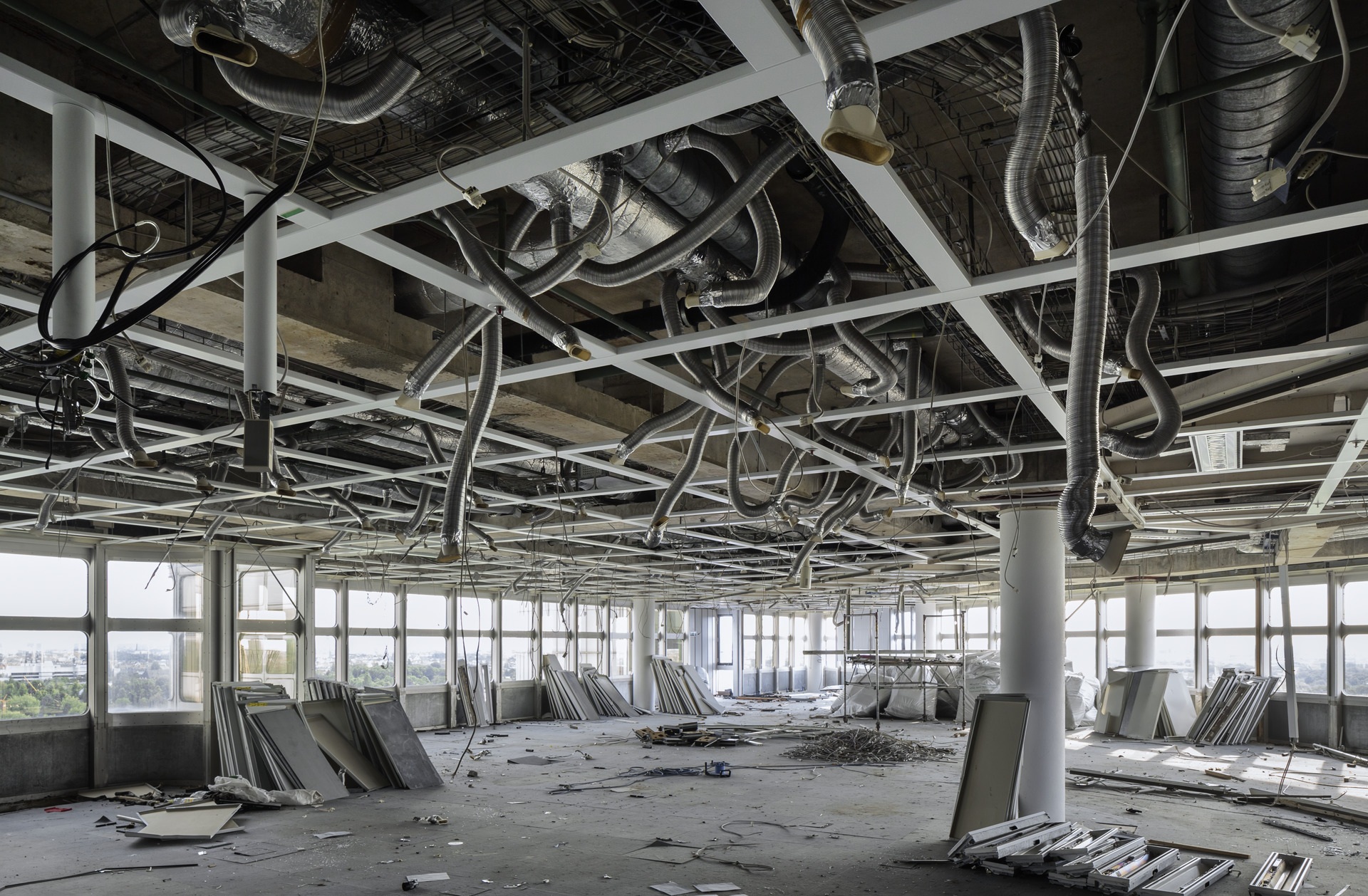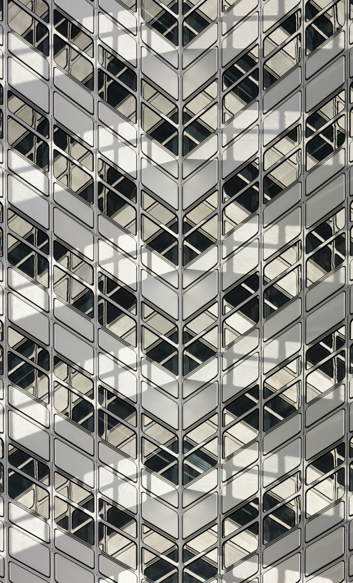 Während die nicht umnutzbaren Teile zum größten Teil recycelt werden konnten, wurden die Aluminium-Brüstungspaneele gesäubert und für den Aufbau der äußeren Schale wiederverwendet. Die Perforation der Elemente für die Frischluftzufuhr wurde unmerklich in die Fassade integriert. Durch die energetische Sanierung der Anlagentechnik ist es gelungen, ein zeitgemäßes Raumklimakonzept mit hohem Nutzerkomfort in die scheinbar unveränderte Hülle zu implementieren.