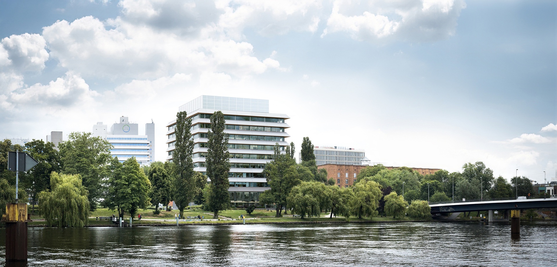 Mit dem iQ space – umgeben von einem Uferpark mit Zugang zum Wasser – verweben sich Wissenschaft, Natur und Stadt zu einem identitätsstiftenden und einladenden Ort, der Mitarbeitenden wie Gästen offensteht.
