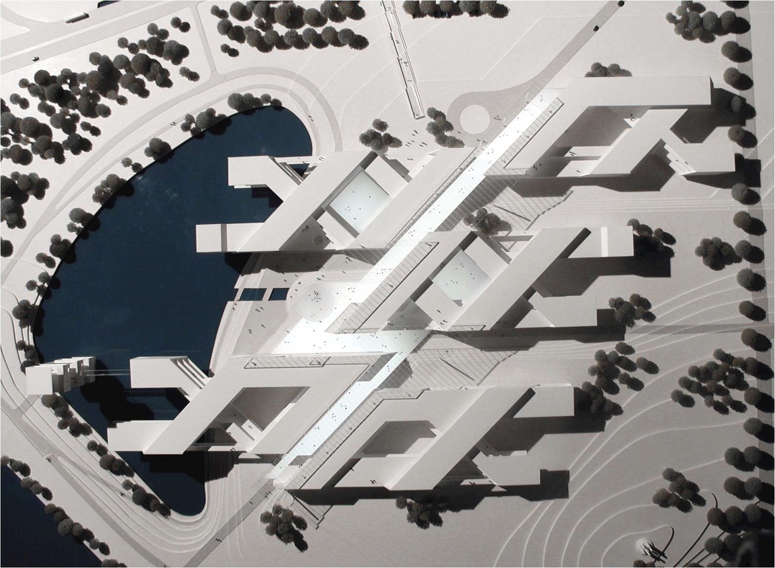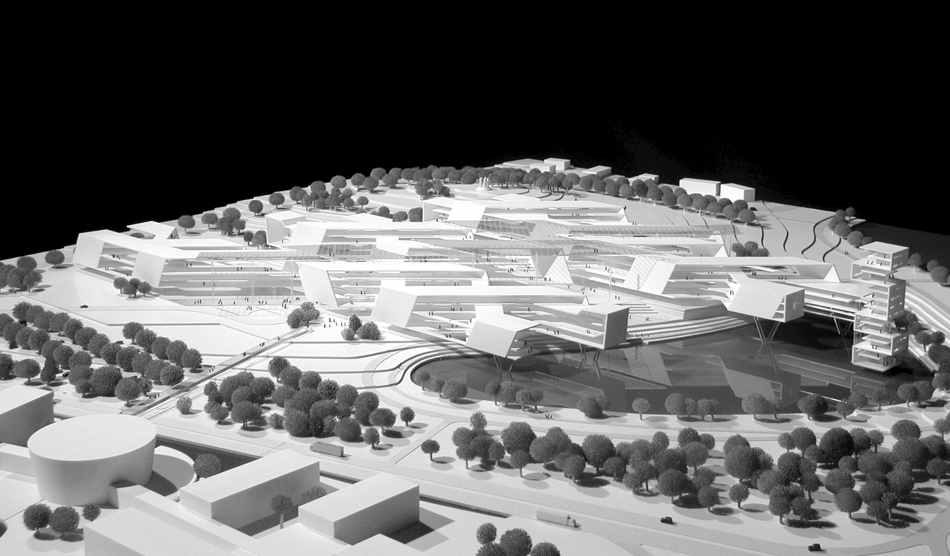 Der Leitidee des Entwurfs für den MobileLifeCampus liegt ein umgreifendes, gekreuztes und scheinbar unendliches Band zu Grunde, stellvertretend für die interdisziplinäre Verbindung der Fachbereiche der Elitehochschule. In Beton gegossen thematisiert es die Tektonik des Gebäudes. Es ist die gebaute Transformation einer Matrix, die Umsetzung der Idee, Wissen in Räumen zu generieren, die durch Überlagerungen und Überschneidungen entstehen.