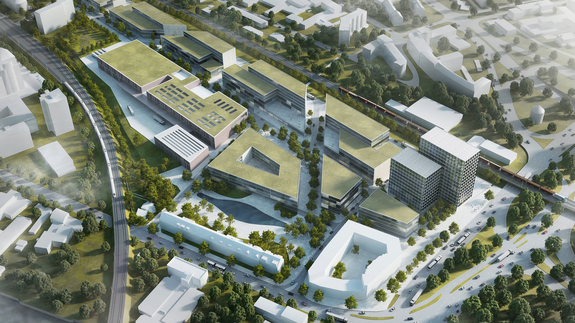 Der Entwurf greift das Vorhaben auf, Fabrikation, Handwerk und Kultur wieder stärker in die Innenstadt zu holen. Dafür soll eine Nutzungsvielfalt mit industrieller Produktion, Gewerbe, kreativer Produktion, Dienstleistungen sowie sozialer Infrastruktur entwickelt werden. Der Neue Huckepackbahnhof soll sich so als Raum für kleinere und mittlere Unternehmen entfalten, in dem sich moderne Arbeitswelten mit Stadtqualitäten verbinden.