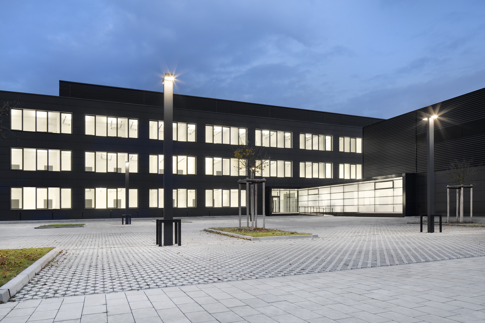 Die beiden Neubauten am Rand des Campusgeländes der Medizinischen Hochschule Hannover stellen 17.400 m² Fläche für die vernetzten Arbeitsplätze von bis zu 300 Mitarbeitern bereit. Das dreigeschossige Laborgebäude am Stadtfelddamm und das rückwärtige Tierhaus mit zwei Geschossen sind durch einen Gang miteinander verbunden. Prägendes Element des Entwurfs ist eine durchgängige Magistrale. Die zentrale Erschließungs- und Versorgungsachse betont den Eingangsbereich an der Straßenseite und ermöglicht den Nutzern eine einfache Orientierung im Gebäude. An sie schließen zwei Lichthöfe und die vier Nutzungsbereiche an. Kommunikationsflächen entlang der Achse unterstützen den Wissens-austausch und fördern die transdisziplinäre Zusammenarbeit. Zusätzliche öffentliche Bereiche bietet die zweigeschossige Halle in der ersten Etage über der Magistrale. Die verglasten Besprechungs- und Aufenthaltsräume in diesem Bereich schaffen ein kommunikatives Umfeld, das von allen Forschungsgruppen flexibel genutzt werden kann. Um die Lichthöfe und entlang der Außenfassaden gruppieren sich auf den einzelnen Geschossen die Labor- und Büroarbeitsplätze. Nach außen präsentiert sich das Forschungs- und Entwicklungszentrum mit einer dunklen Lochfassade, die mit Faserzementplatten verkleidet ist. Der Neubau ist ein maßgeblicher Baustein für das Exzellenzprofil der Stadt Hannover als Wissenschaftsstandort im Bereich der Medizintechnik.