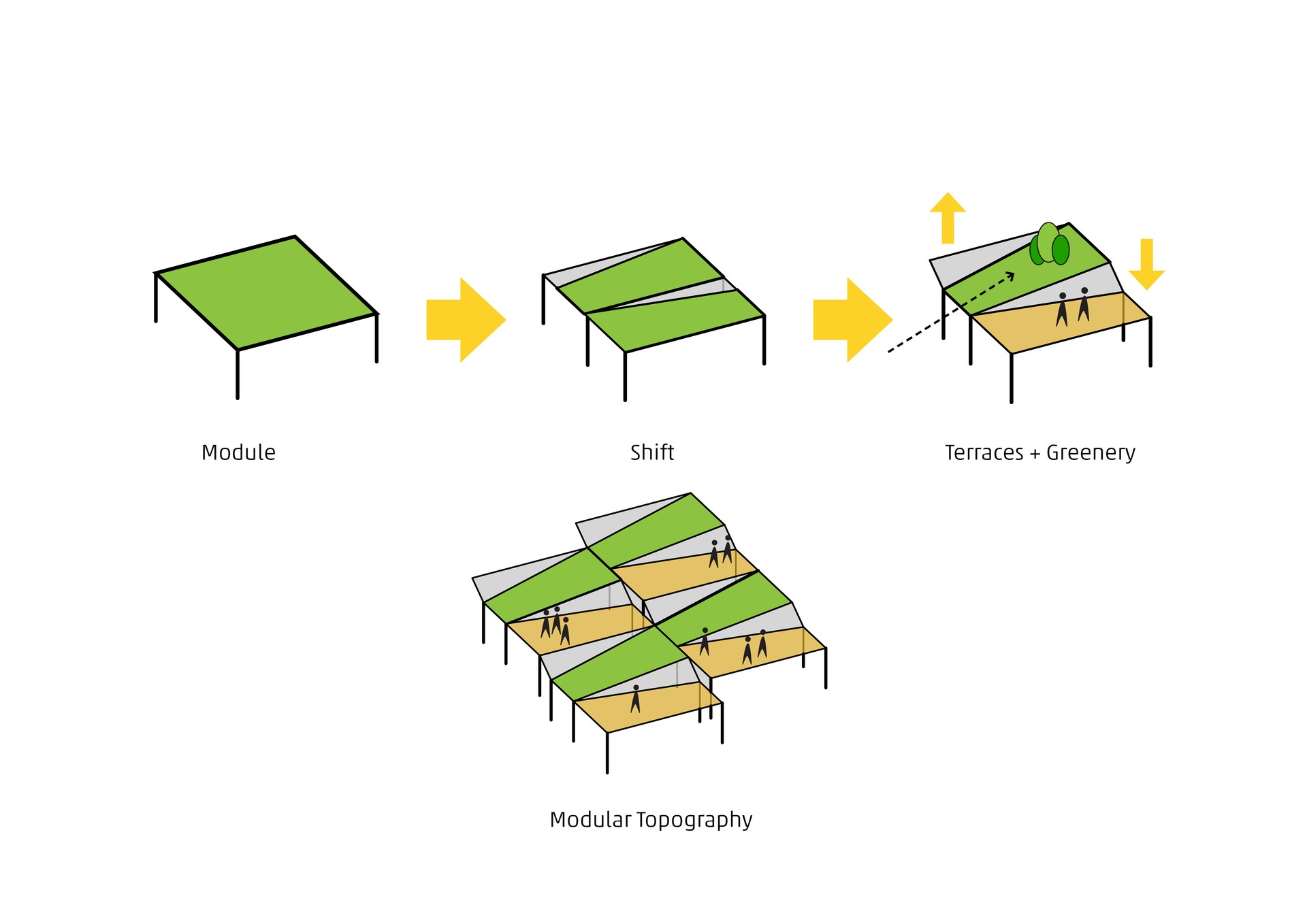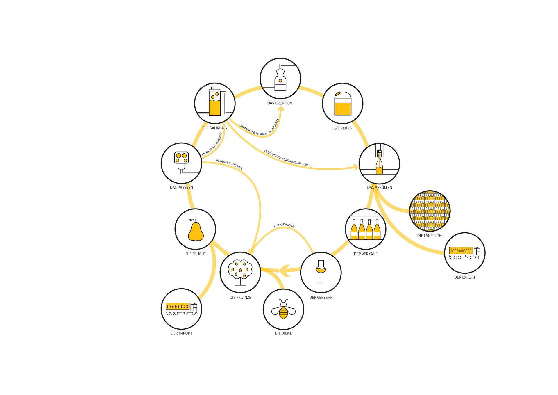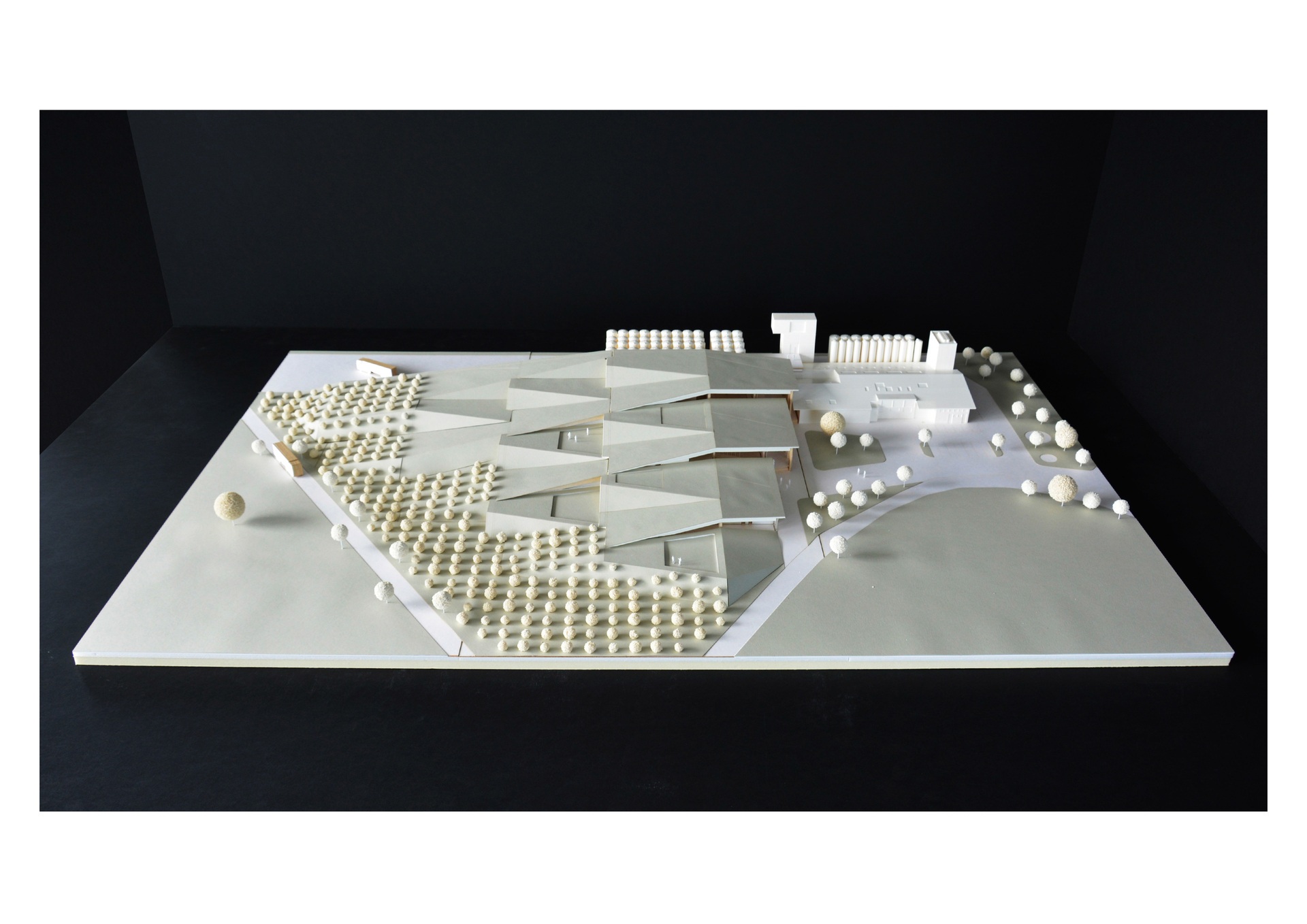 Die modulare Bauweise ermöglicht, dass in der zweiten Phase Produktionshallen und Tanklager nahtlos an das bestehende Objekt angegliedert werden können. Ebenerdig flacht die Erweiterung ab und imitiert einen sanften Hügel. Fließend gehen die Räumlichkeiten ineinander über und ermöglichen, dass Besucher*innen die Produktionsprozesse, vom Pressen der Früchte bis hin zum Abfüllen, hautnah erleben. Die organische Formensprache und die großflächigen Begrünungen assoziieren Natürlichkeit, Nachhaltigkeit und Langlebigkeit.