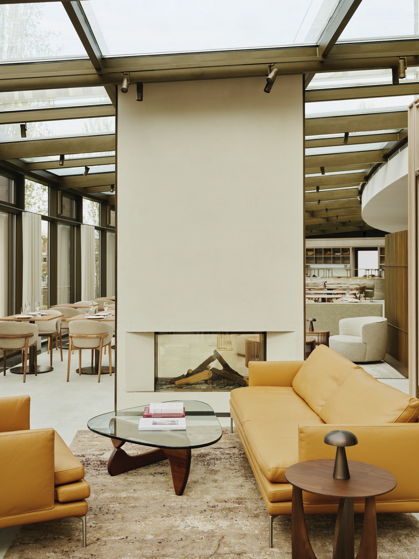 Vom Ufer des Mittellandkanals in der Autostadt Wolfsburg bietet das AURA Restaurant des 5-Sterne-Hotels Ritz-Carlton einen eindrucksvollen Blick auf das denkmalgeschützte VW-Kraftwerk. Im Kontrast zur industriellen Umgebung hat HENN das Interieur, inspiriert von einer Küstenlandschaft, mit hellen, warmen Farben und natürlichen Materialien gestaltet.