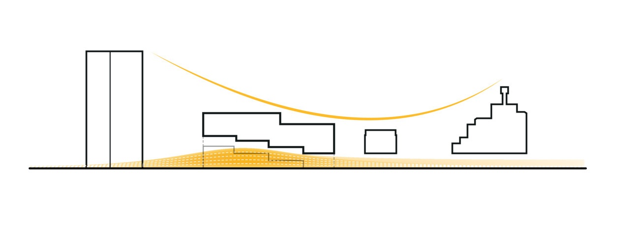 Die einzigartige Kubatur des Neubaus setzt den städtebaulichen Rahmen und vermittelt durch die gestaffelte terrassierte Höhenentwicklung zwischen dem Blumau Tower und dem Stammhaus. Die innenliegende Plaza zeichnet sich bis an die Gebäudefassaden ab und erzeugt einen schwebenden Eindruck der höheren Ebenen.