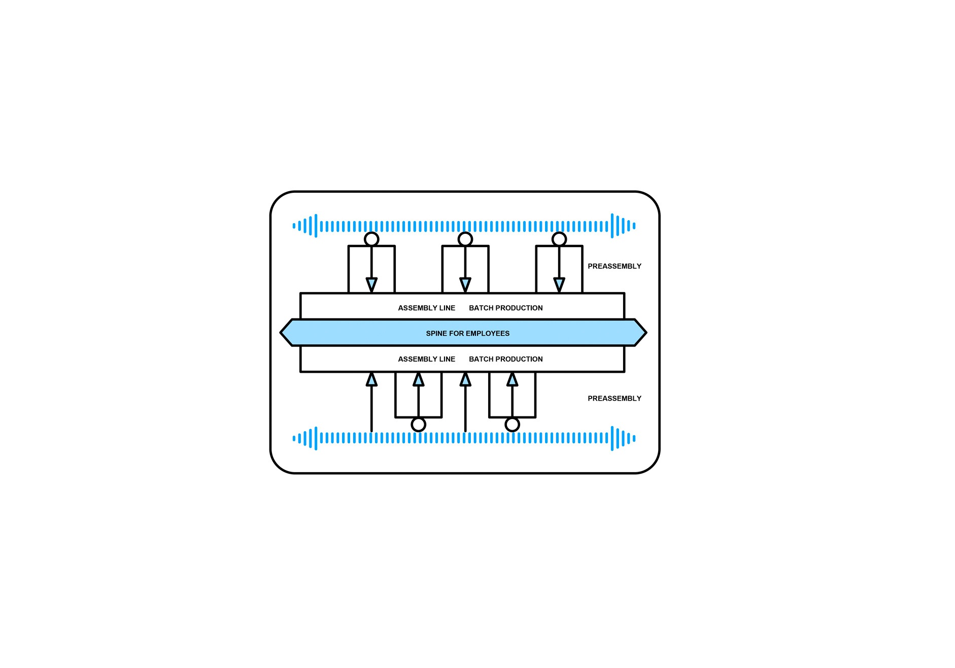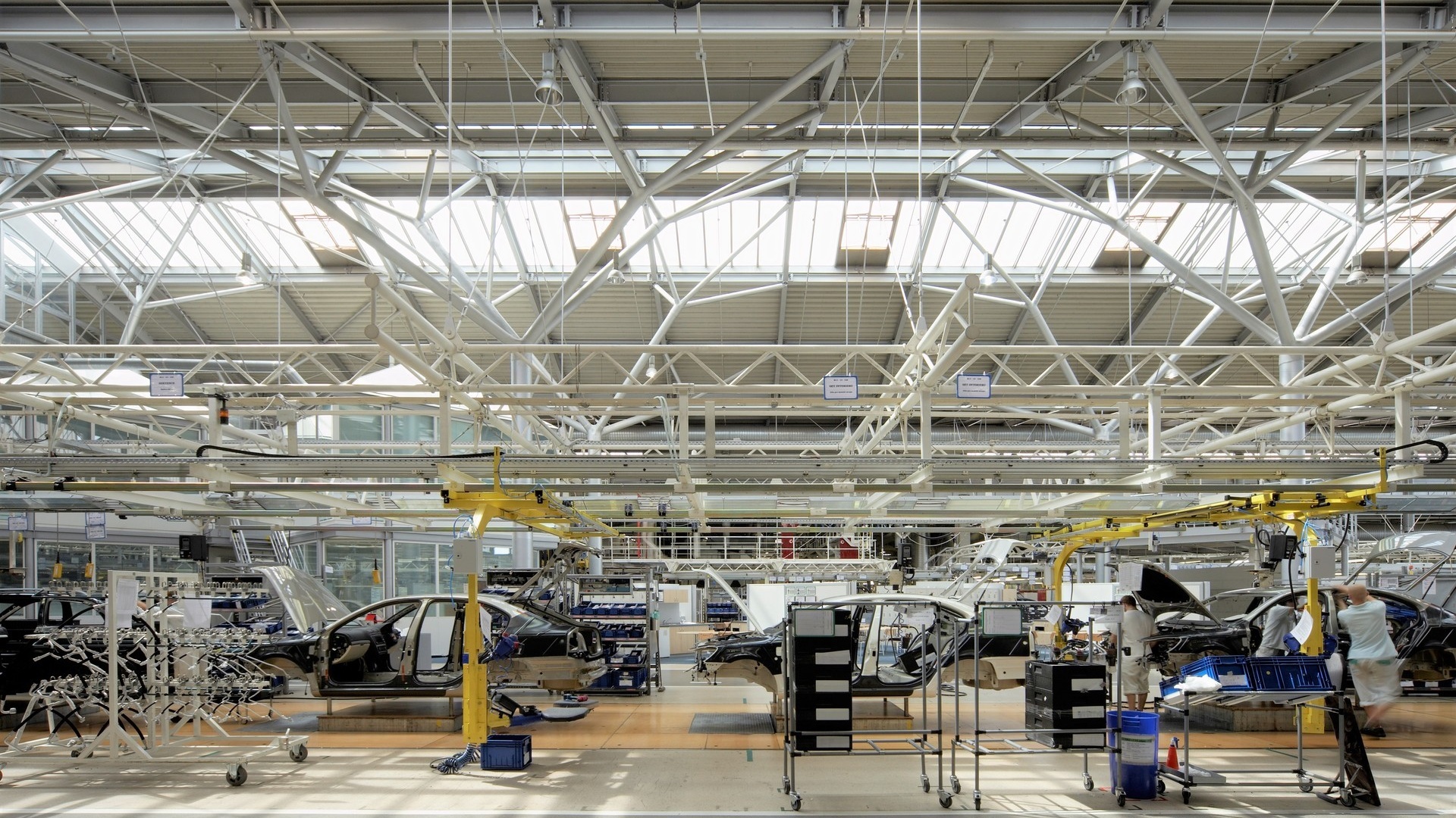 Für die Škoda automobilova in Mlada Boleslav wurde in der Tschechischen Republik die erste fraktale Fabrik gebaut. Bei dem neuen Montagewerk ist die Philosophie modularer Strukturen verwirklicht. Das Strukturmuster stellt das sogenannte „Spine-Muster“ – der zentrale Nervenstrang des Fabrikkonzeptes – dar, durch den sämtliche Steuerbefehle laufen. Auf dieser zentralen Erschließungs- und Fertigungsachse wickelt sich die Automobilproduktion im synergetischen Zusammenspiel miteinander vernetzter Teilsysteme in kleinen Qualitäts-Regelkreisen ab.In diesem Spine sind Teamräume, Try-out-Flächen, Besprechungsräume, Sozialeinrichtungen, aber auch Arbeitsplätze der Werksleitung, des Personalwesens und der Ingenieure angeordnet. Die Funktionsbausteine liegen im Zentrum – auf der gleichen Ebene wie die Produktionslinien. Dabei erlangt vor allem die Kommunikation – die nicht hierarchisch, sondern fraktal gegliedert ist – eine tragende Bedeutung. Der Informationsfluss zwischen der Produktion und den Büros erfolgt ohne räumliche Hindernisse oder zeitliche Verzögerung und ermöglicht jedem Mitarbeiter eine optimale und offensichtliche Prozessorientierung.