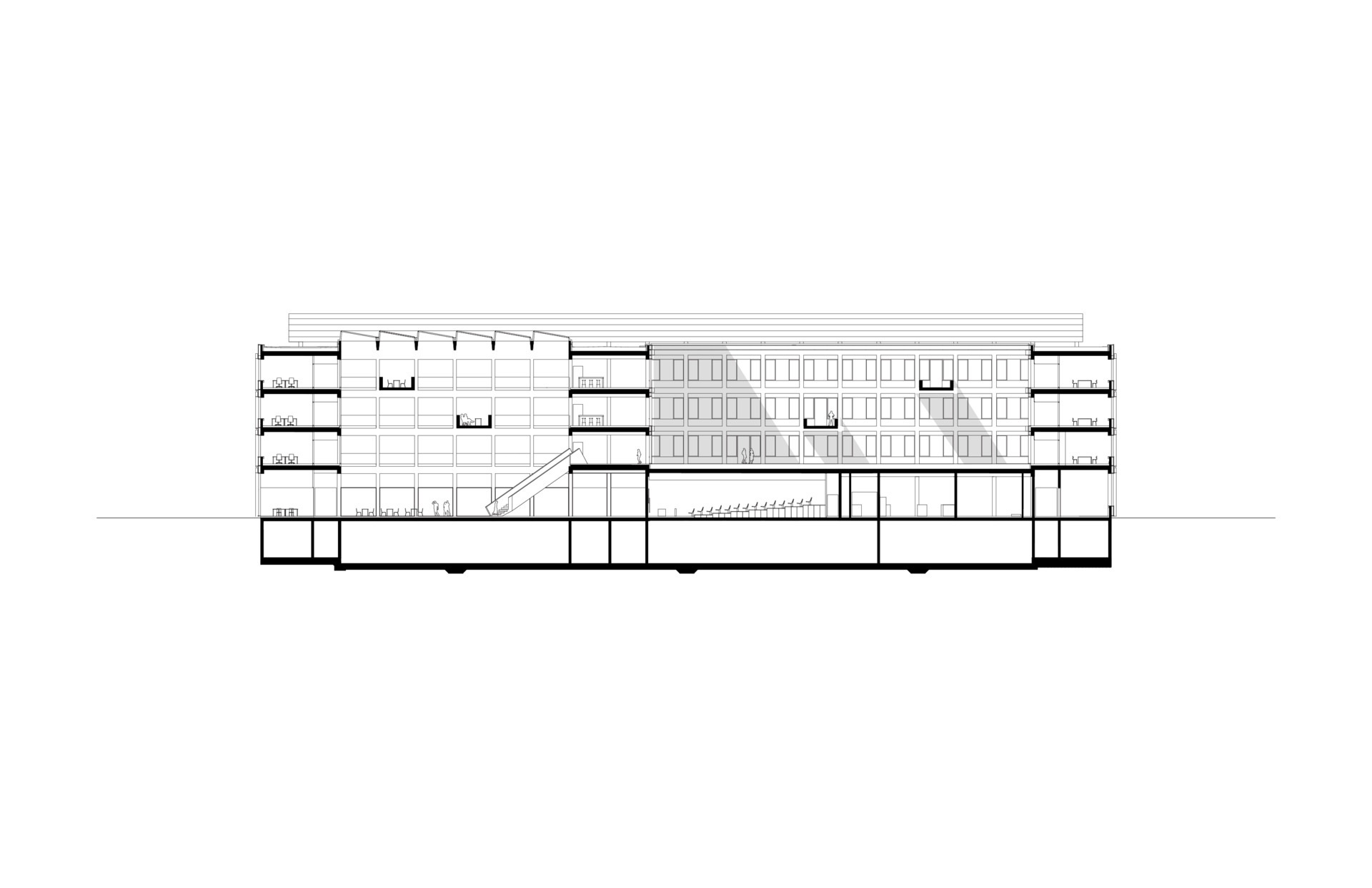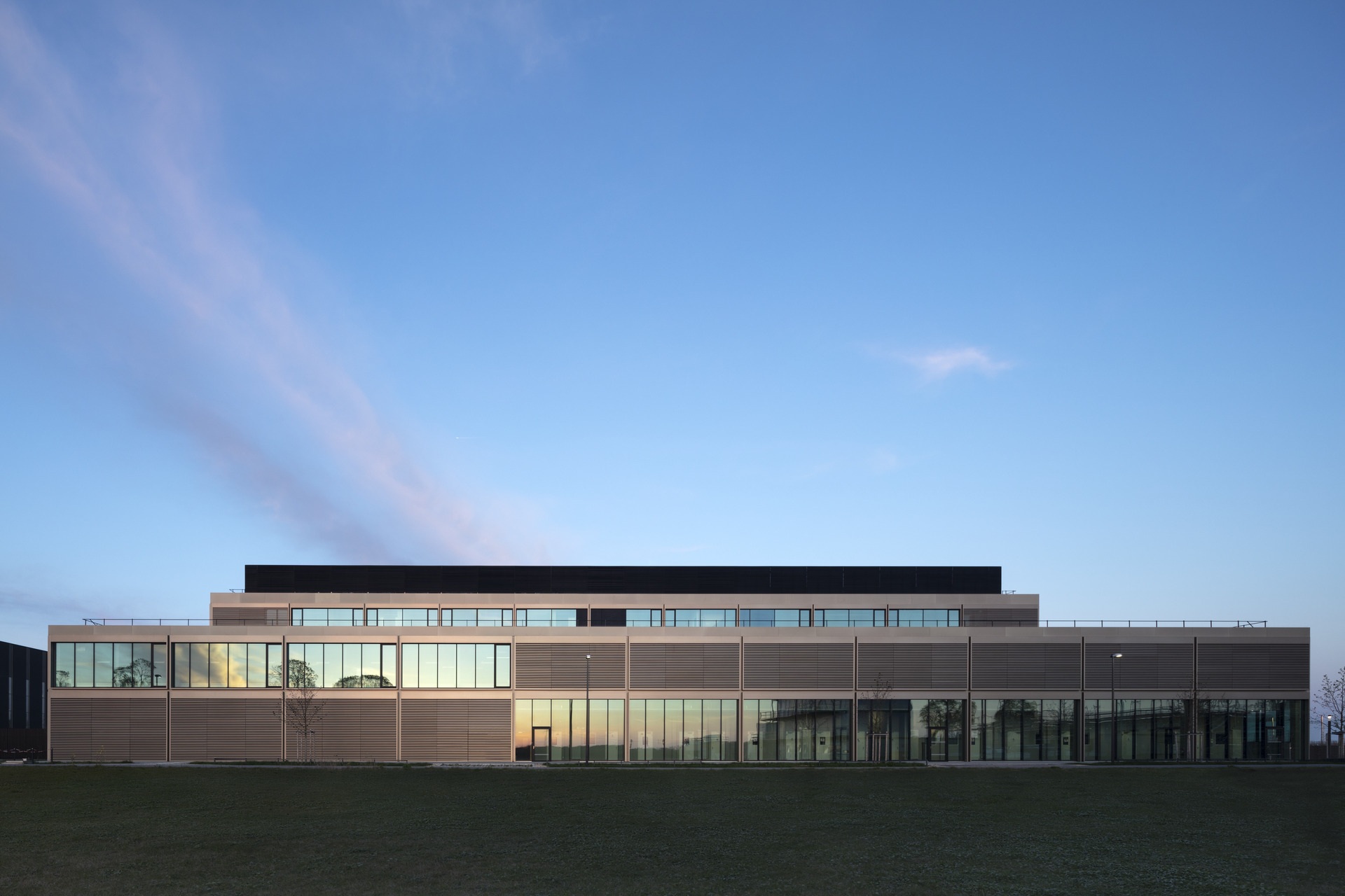 Das große und helle Forum nimmt zwei große Hörsäle, eine Cafeteria sowie flexibel nutzbare Flächen für Konferenzen oder Ausstellungen auf. Die vier Lehrgebäude werden um ein Parkhaus ergänzt. Jedes Gebäude ist unterschiedlich in der Grundfläche und Höhe ausformuliert. Im ersten von zwei Bauabschnitten werden fünf Forschungseinheiten für Mitarbeiter und Studierende gebaut. Um die räumlichen Anforderungen einzelner Nutzungen gerecht zu werden, sind die Werkstätten, die Versuchshalle und die Rein- und Prozessräume im Erdgeschoss angeordnet. Labore, Seminarräume und Büros befinden sich in den Obergeschossen und werden von mehreren Arbeitsgruppen gemeinsam genutzt.