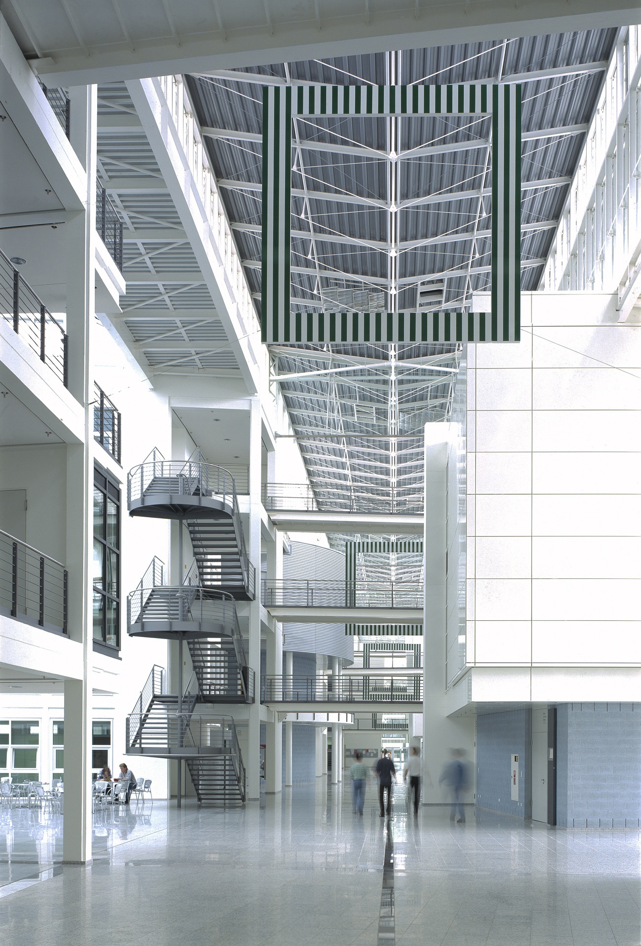 Im Jahre 1997 entstand für die TU-Fakultät für Maschinenwesen in Garching bei München eine Wissensstadt, die sich aus sieben Instituten mit 28 Lehrstühlen zusammensetzt. In einer Bauzeit von nur drei Jahren wurde der über 50.000 Quadratmeter Hauptnutzfläche umfassende Hochschulkomplex realisiert. Entsprechend den facettenreichen Anforderungen einer modernen Universität wurde der Neubau in Kommunikations- und Konzentrationsbereiche aufgegliedert. Die „Philosophie der Kommunikation“ prägt die Ordnungs-, Orientierungs- und Raumstruktur des urban anmutenden Gebäudekomplexes.