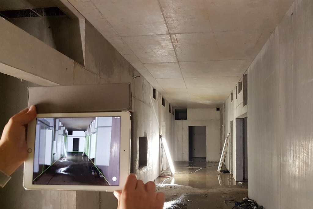 The data model enables us to retrieve installed materials and components and their properties. We employ augmented reality to detect and rectify geometric discrepancies without having to perform post-completion measurements.