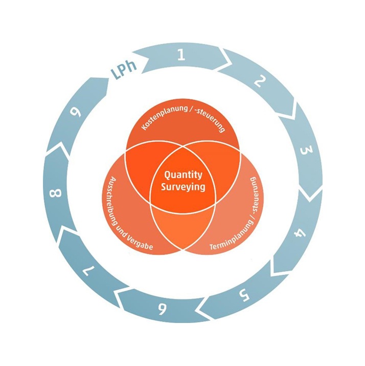 Costs, deadlines, and quality are the determining factors of any project. Quantity Surveying (QS) forms part of all work phases and considers itself to be an integral part of the project team. Our QS specialists are responsible for the entire cost and schedule management as well as the tendering and award process. Only the smooth interplay of these processes will enable successful project completion – on time, within budget and in accordance with the agreed-upon quality standard.
