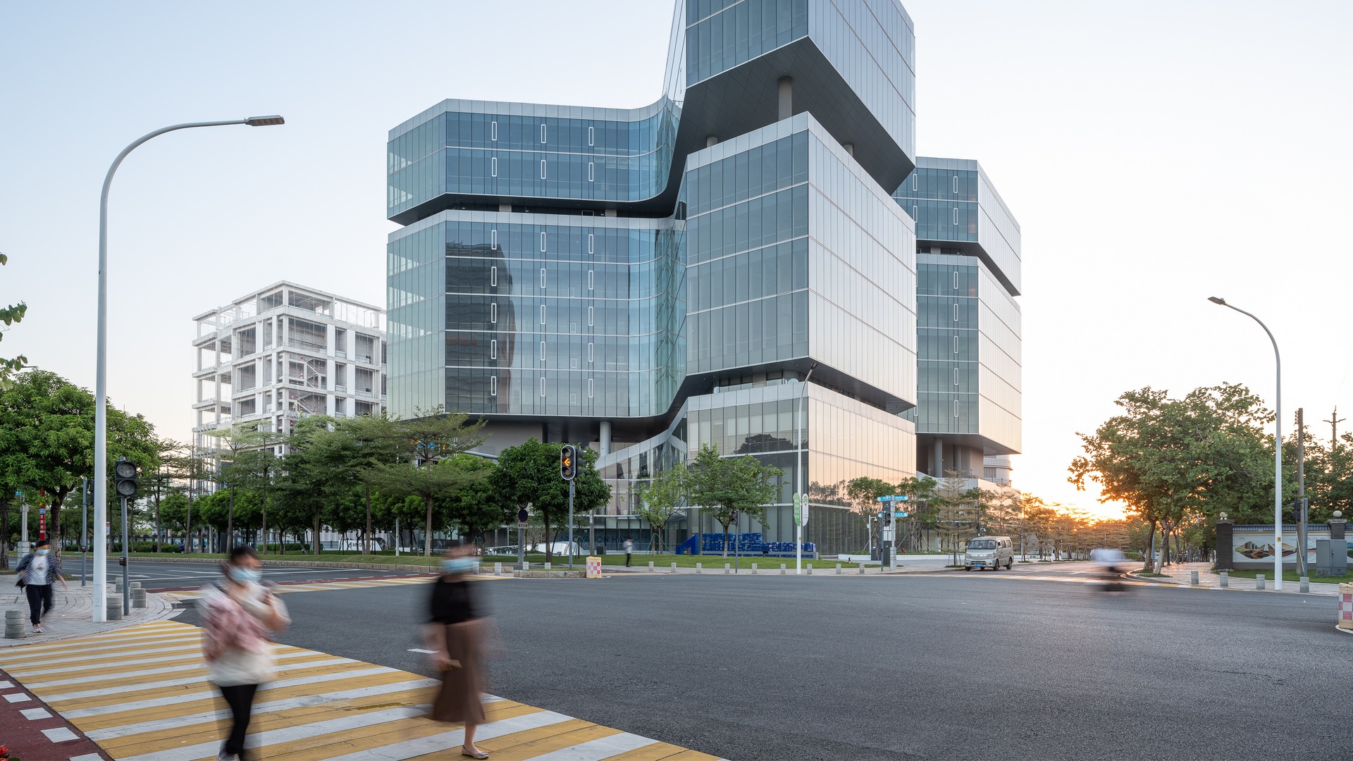 The Innovation Center for High-Performance Medical Devices (IHM·GBA) has been completed. It is located in the heart of Guangzhou’s thriving international Bio Island, a dedicated zone for the development of biomedical research and technology. The building is used to develop high-performance medical devices, which requires a design that combines laboratories and spaces for research with areas for informal communication and open office spaces.