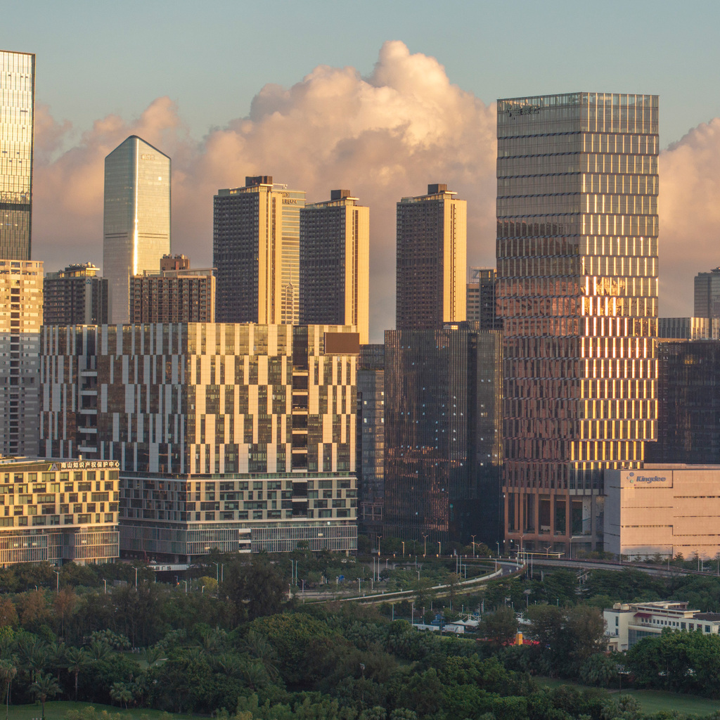 Set at the edge of Shenzhen’s Nanshan neighborhood, an emerging tech district, the Kingdee Cloud Tower is now complete. Overlooking a lush green corridor and Shenzhen Bay, the 211-meter-high tower serves as the final addition to the Kingdee software park. It houses office spaces, conference facilities and a restaurant for Kingdee, the leading provider of enterprise management cloud services globally. Our design had been selected as the winner in an architectural competition in 2014.