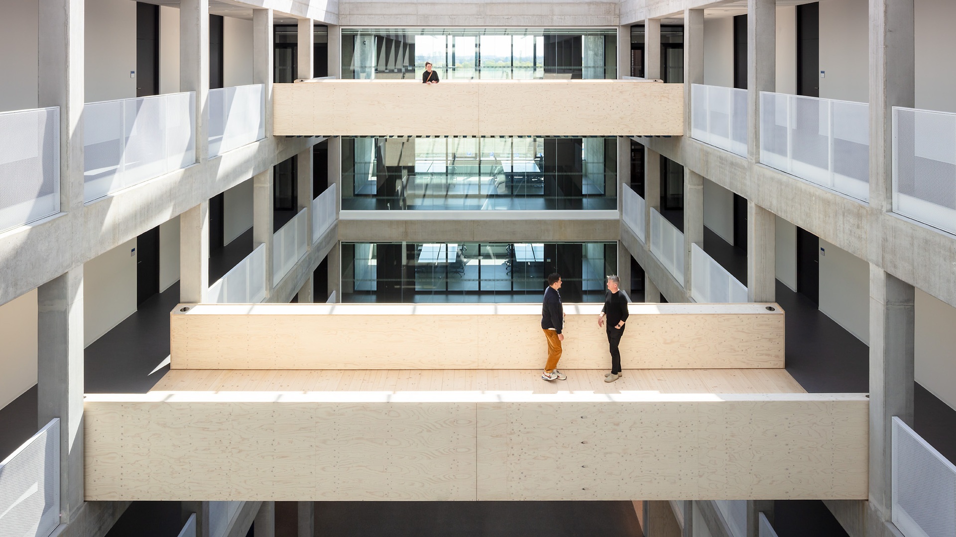 The HENN-designed Faculty of Electrical Engineering and Computer Science, or El Building, opened yesterday with a small ceremony in Munich. The building is part of the Technical University of Munich (TUM) Garching Research Center. Garching is the largest research campus in Europe, and the El Building is the first phase of a planned four-building campus. The central atrium contains collaborative work areas, informal seating, catwalks and stairways. The open space creates physical and visual connections between levels containing classrooms, labs and workshops.