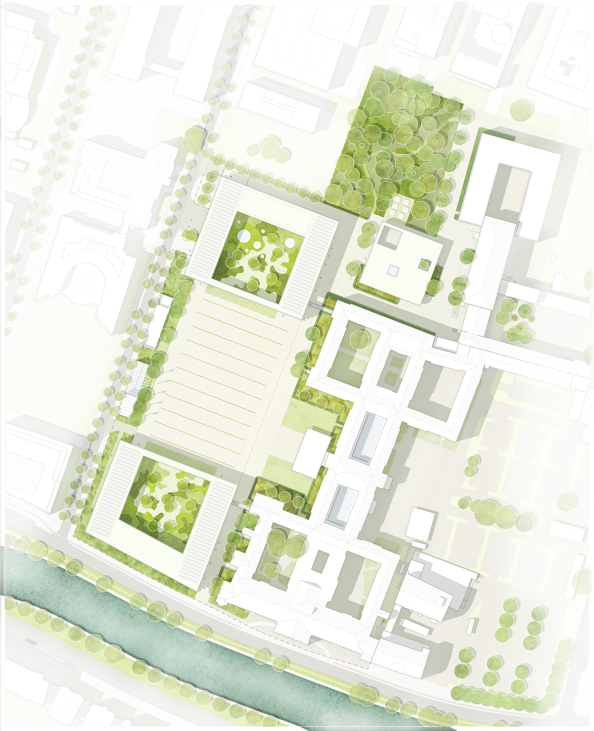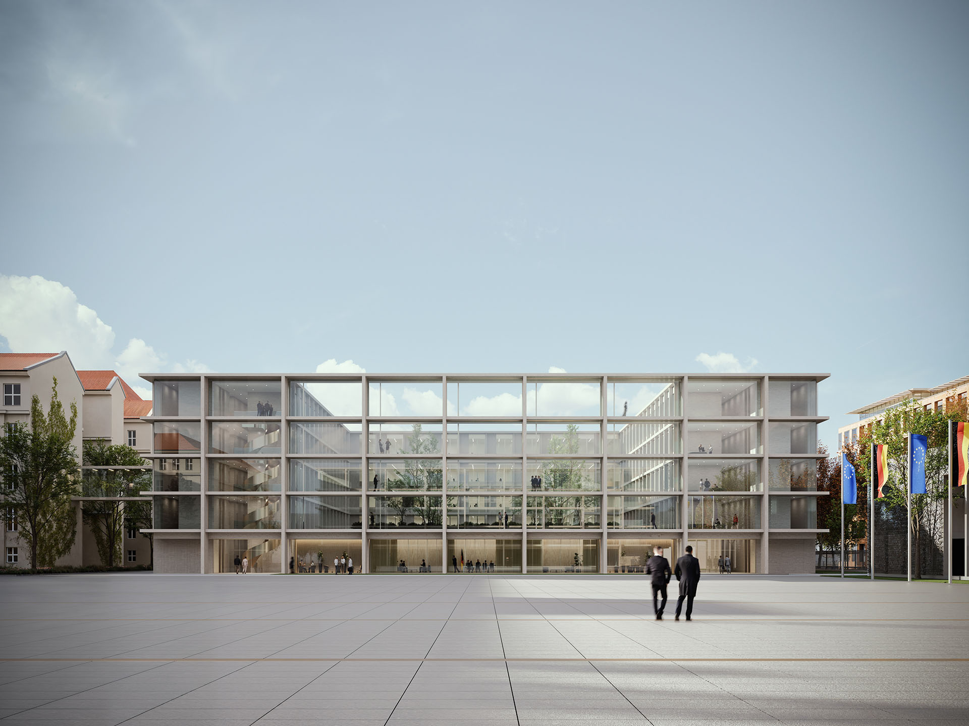 HENN’s design incorporates three new buildings alongside the imposing historic structures, which were built from 1911 onwards. The new additions – two administrative buildings and a canteen pavilion – are designed to be resource- and energy-efficient. The entire site will be transformed into a permeable green campus. Its design instills transparency as well as self-confidence, symbolizing the preservation of our democratic and liberal values.