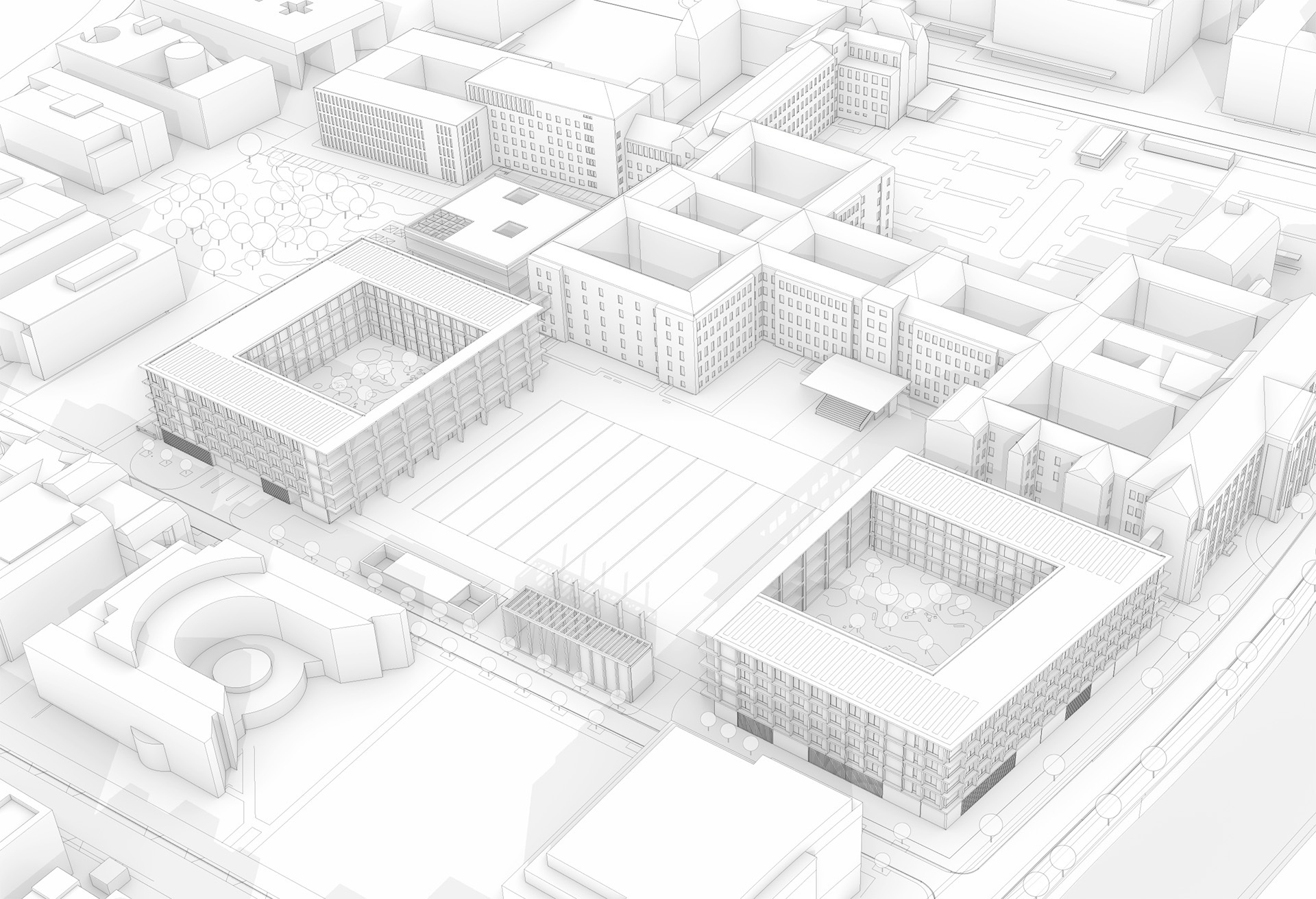 The Bendlerblock is a listed complex of buildings situated in Berlin’s Tiergarten district and one of the most significant sites of Germany’s recent history. Once a place where military resistance against the Nazi regime emerged, it currently houses the Federal Ministry of Defence. This historic ensemble is going to be expanded using previously undeveloped portions of the site.