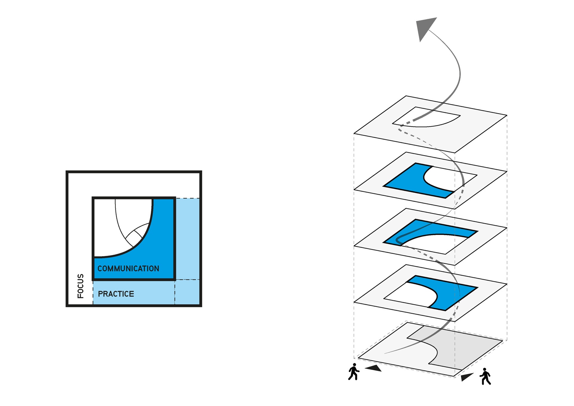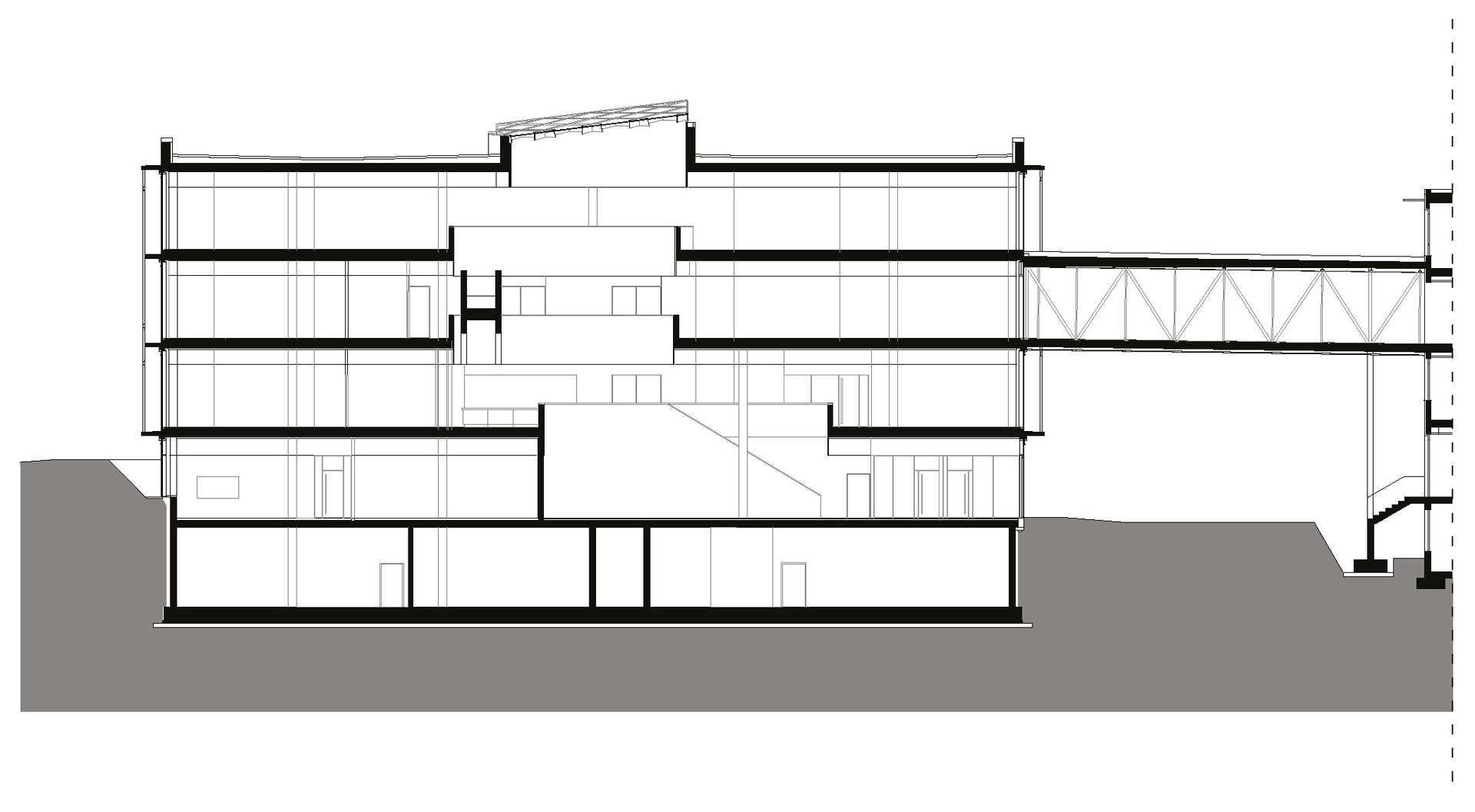 The design of the upper stories is informed by the idea of horizontal and vertical networking across floors. Test rooms, offices, and communication areas are interwoven into a large, coherent world of knowledge in which products, projects and people come together.