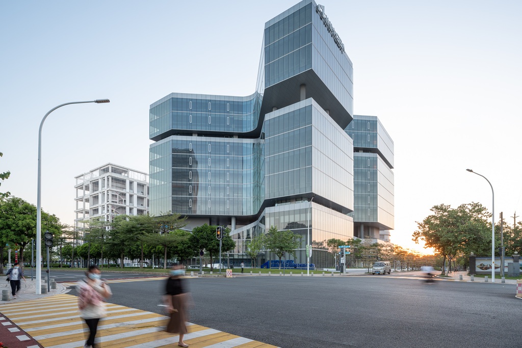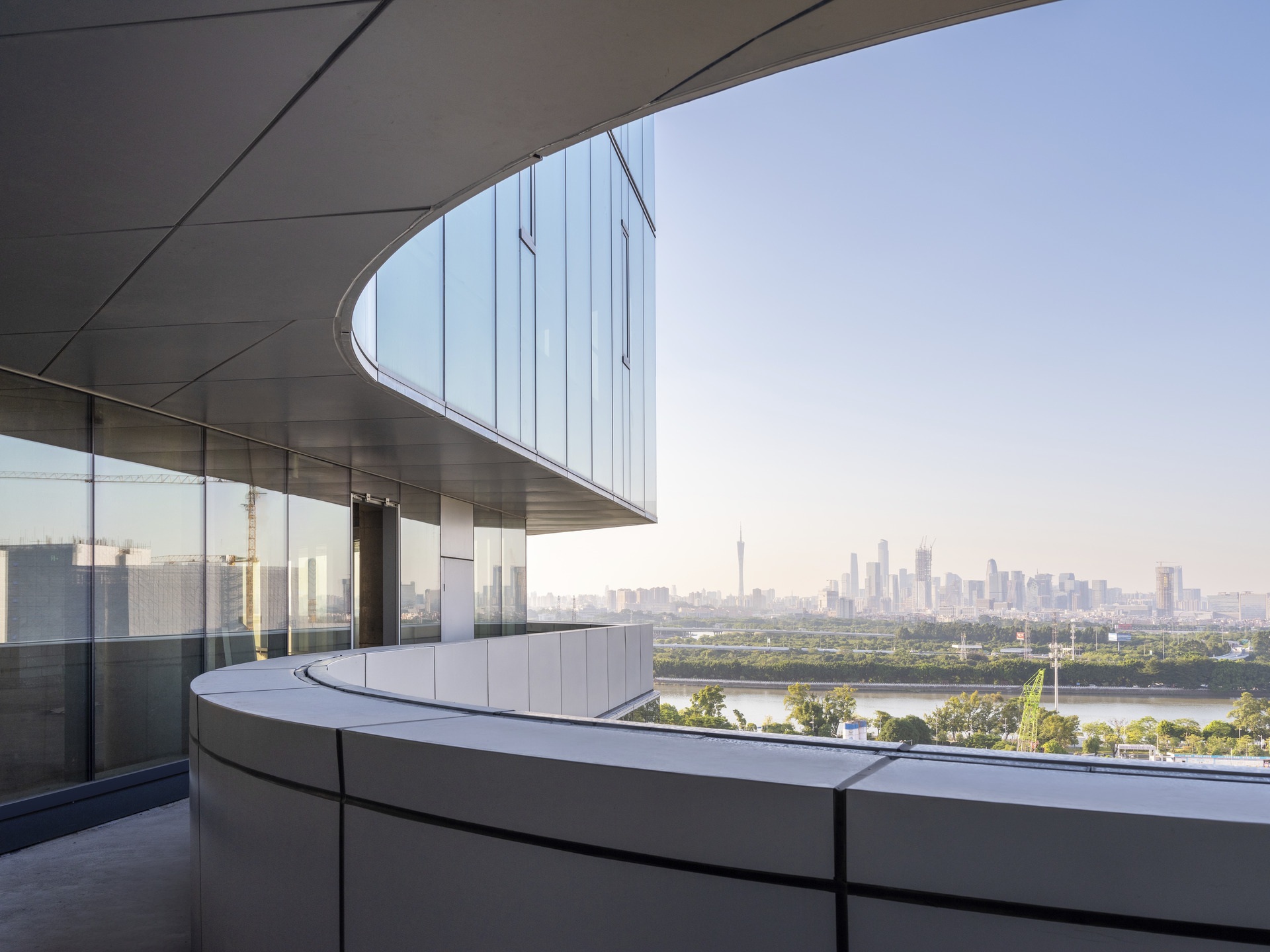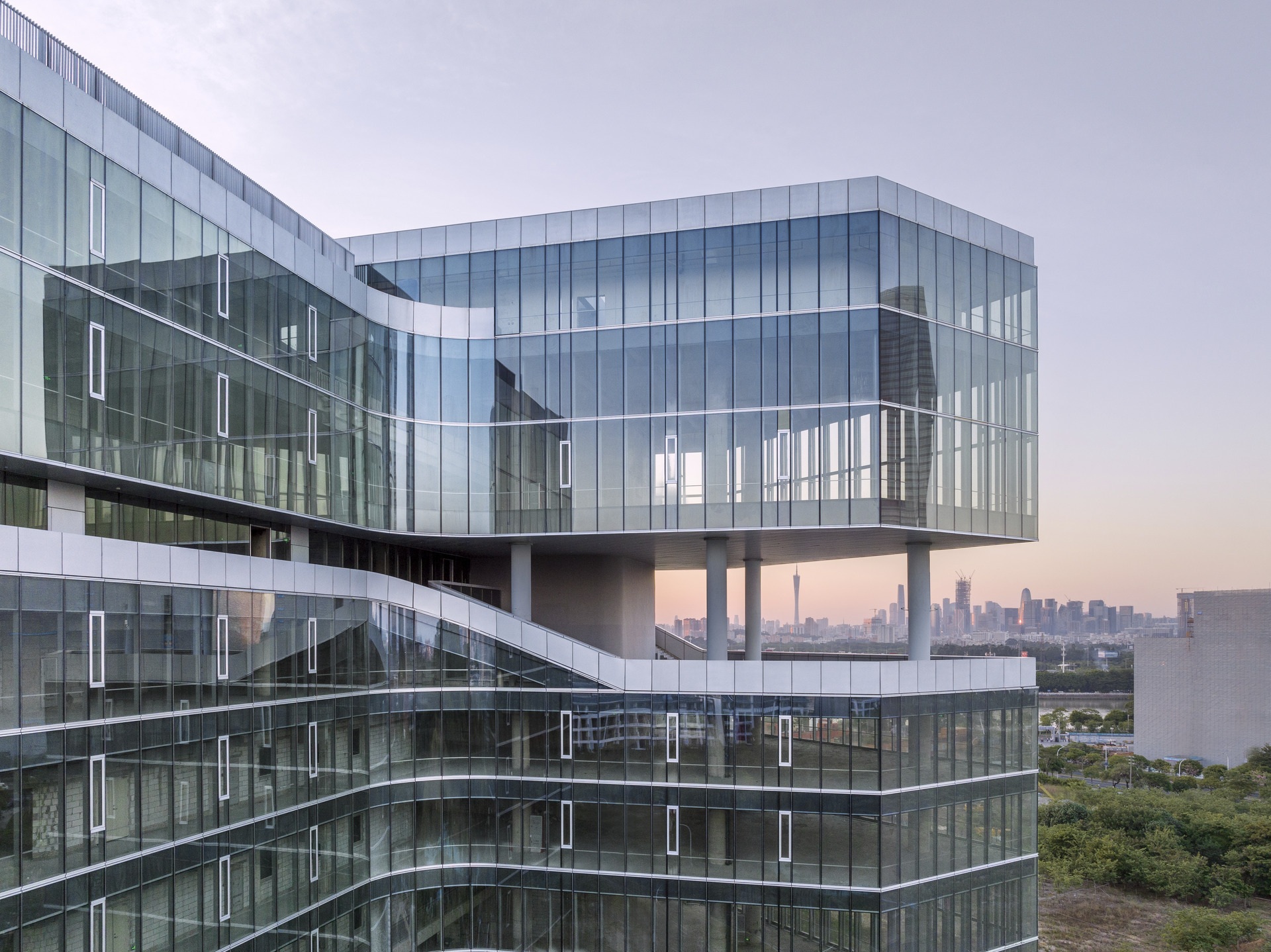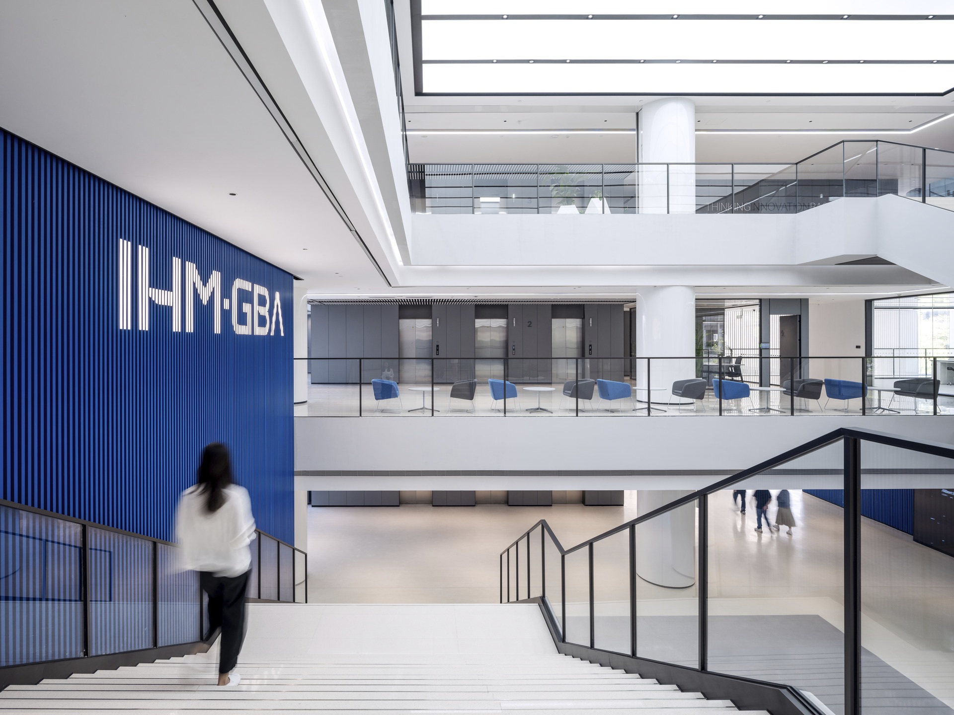 The Innovation Center for High-Performance Medical Devices (IHM·GBA) is located in the heart of Guangzhou’s thriving international Bio Island, a dedicated zone for the development of biomedical research and technology. The building is used to develop high-performance medical devices, which requires a design that combines laboratories and spaces for research with areas for informal communication and open office spaces.