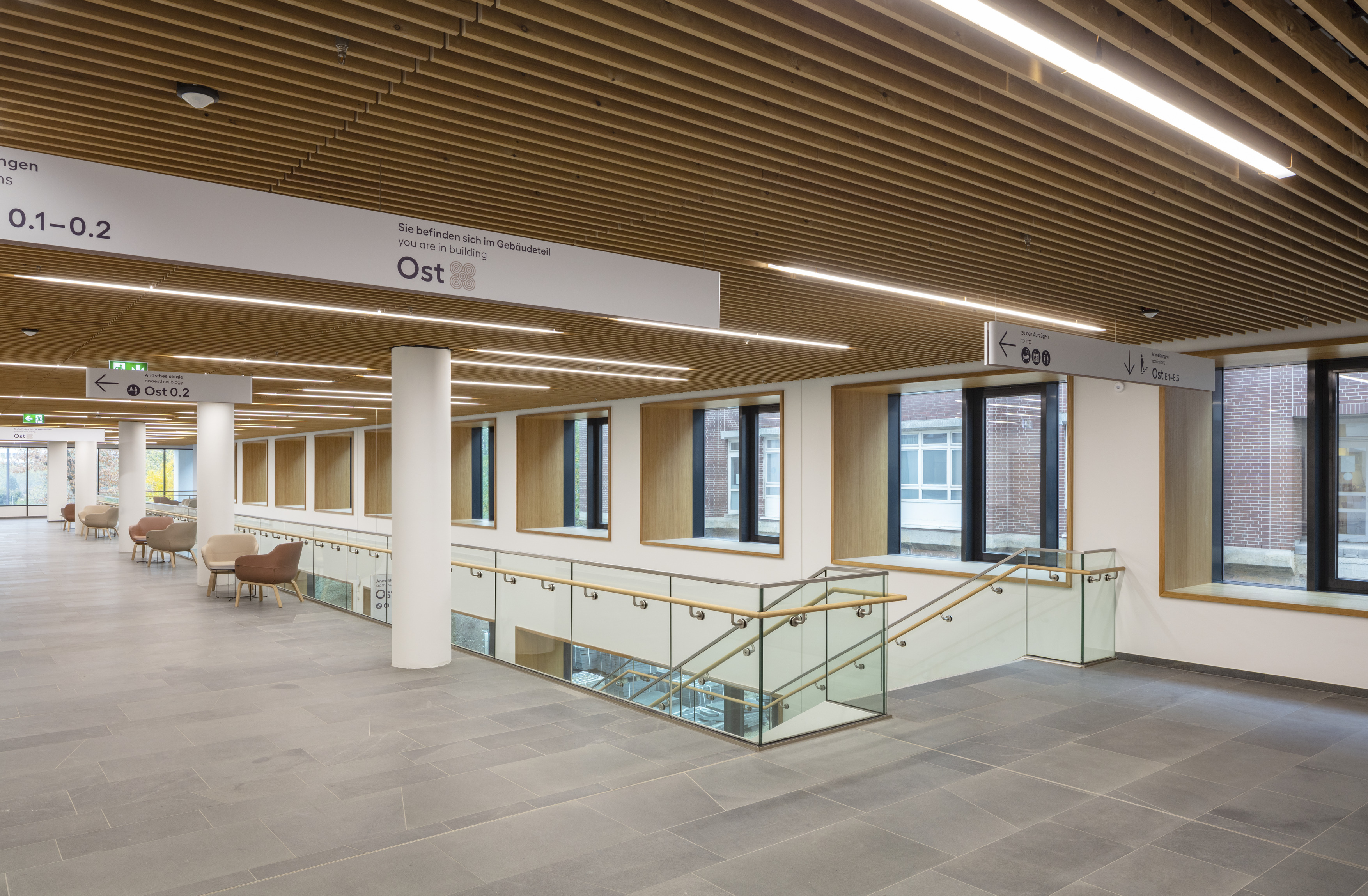 The new complex will provide 1,500 beds and thus accommodate significantly more patients, who will receive consistently better care thanks to state-of-the-art medical equipment and an interdisciplinary setting. The new clinic provides employees with clear guidance and workflows, as well as access to recreational areas.