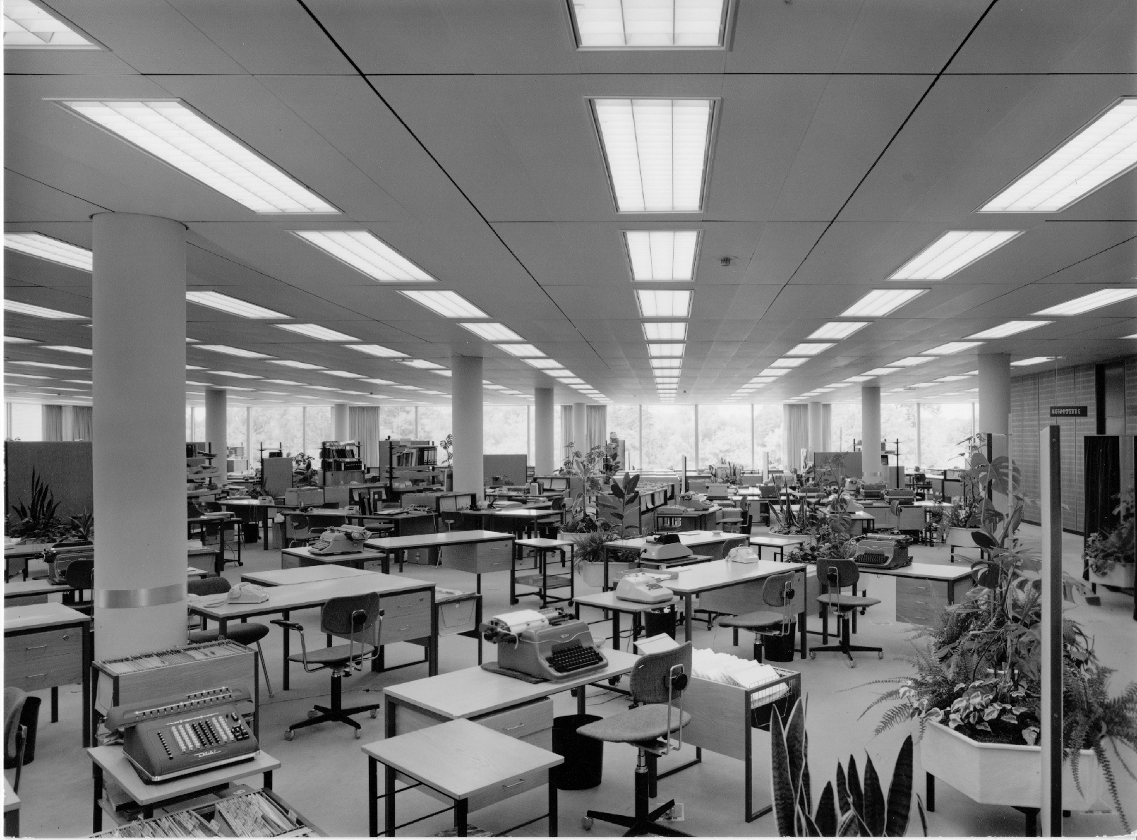 As is evident in particular from its appearance, the six-storey administration building is based on a square plan layout, which is inspired in terms of functionality and aesthetic by international modern architecture. The standalone steel-framed structure is designed for open-plan offices so that new layouts can be introduced quickly if necessary to adapt to different use, improve communications or speed up the flow of information.