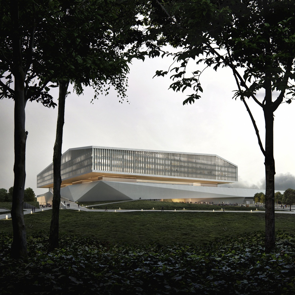 The four-storey buildings are arranged in a line and together have a total of over 70,000 sqm of floor space. The linear arrangement provides the setting for a series of five courtyards in which Chinese gardens depict the company’s history and express its values. The courtyard at the centre is simultaneously the central entrance area. Situated on the northern outskirts of the capital, the provision of local shops, cafeteria and sports facilities plays a key role in its utilisation. The compact form of the complex allows for the creation of some spacious outdoor areas: the southern end of the headquarters will feature an expanse of parkland with an imposing driveway flanked by a corporate museum. Two free-standing, cube-shaped buildings for public use will form the western edge of the group.