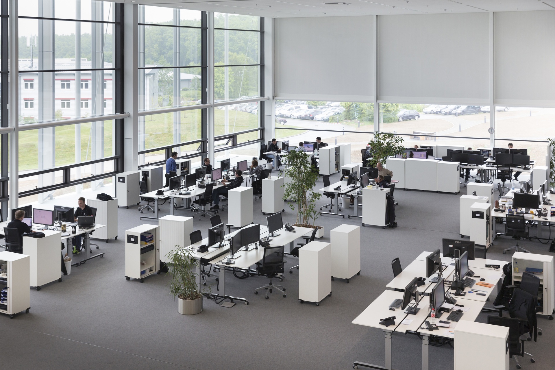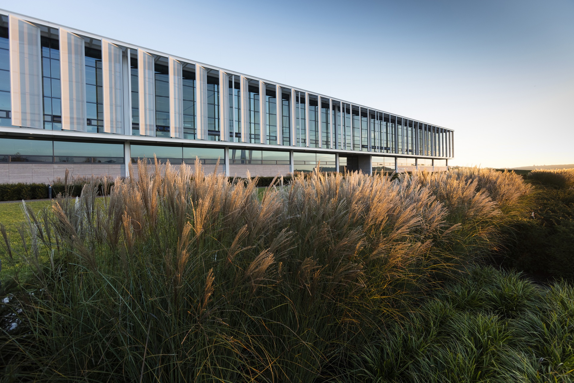 The two- and three-story building expands the existing corporate campus to the southeast. Its layout reflects the entire value chain of one of the company’s business units, including spaces for development and administration, production facilities, and a logistics building. The factory’s modular design allows for the campus to be expanded further in the future to include additional business units.